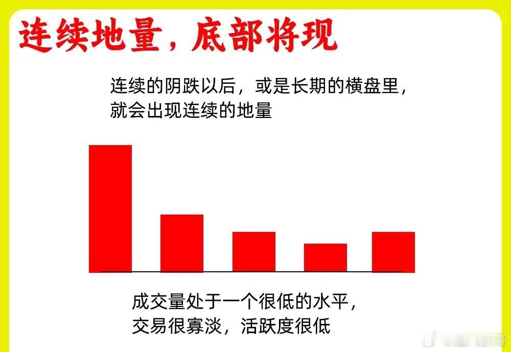 6. 连续地量,底部将现成交量出现缩量,缩到极致,是一个比较长时间里,成交量最为小的一个阶段,说明此时的抛压很已经很弱,没有多少在买卖。出现这种地量,一般是股价长期的低位横盘阶段出现