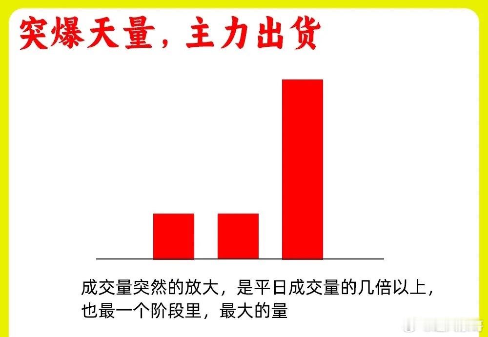 3.突爆天量,主力出货成交量出现天量,是这一个阶段里最大的成交量,说明市场有大量筹码在这换手。一直量柱一般会出现高位,上涨趋势的末期,往往代表主力出货,要知道散户是做不到同步的去卖出筹码,只有主力能做到步调一致