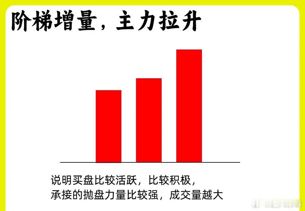 2.阶梯增量,主力拉升这种一种健康的量价关系,成交量逐步的放大,股价也同步上涨,说明此时的买盘力量越来越大,情绪越来越强。