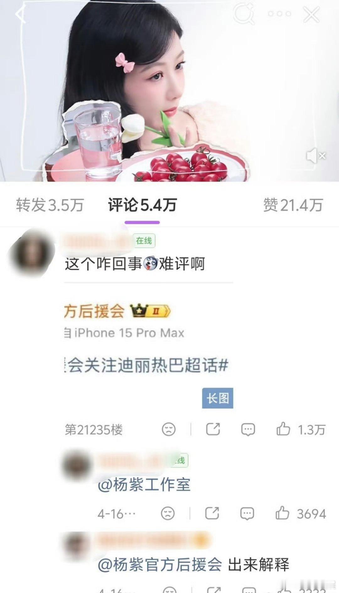 杨紫和迪丽热巴怎么了,迪丽热巴方在杨紫工作室下评论要求给迪丽热巴解释和道歉。