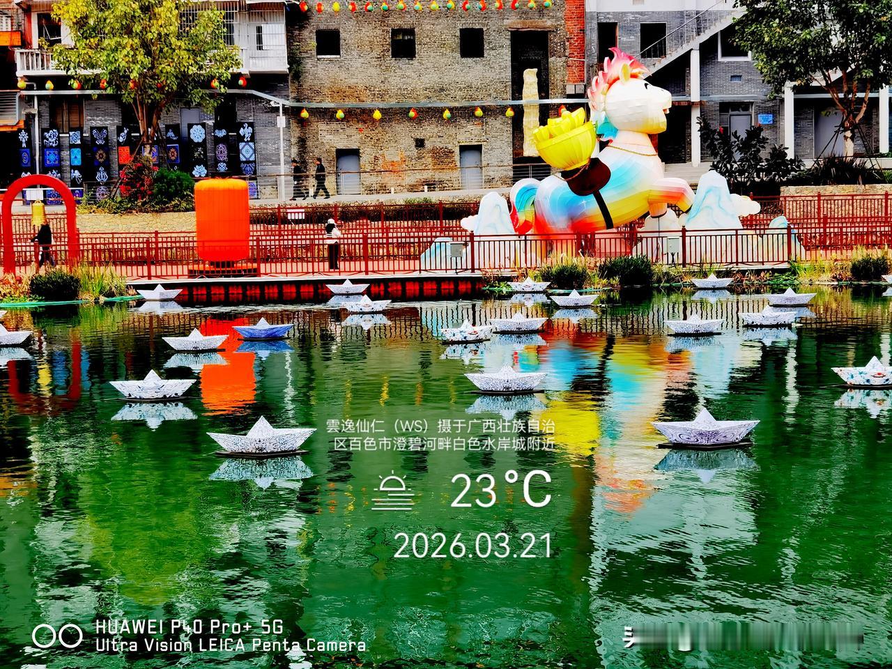 旅居生活记录(9463)广西壮族自治区百色市(148):水灯、过河栈桥、马上等。