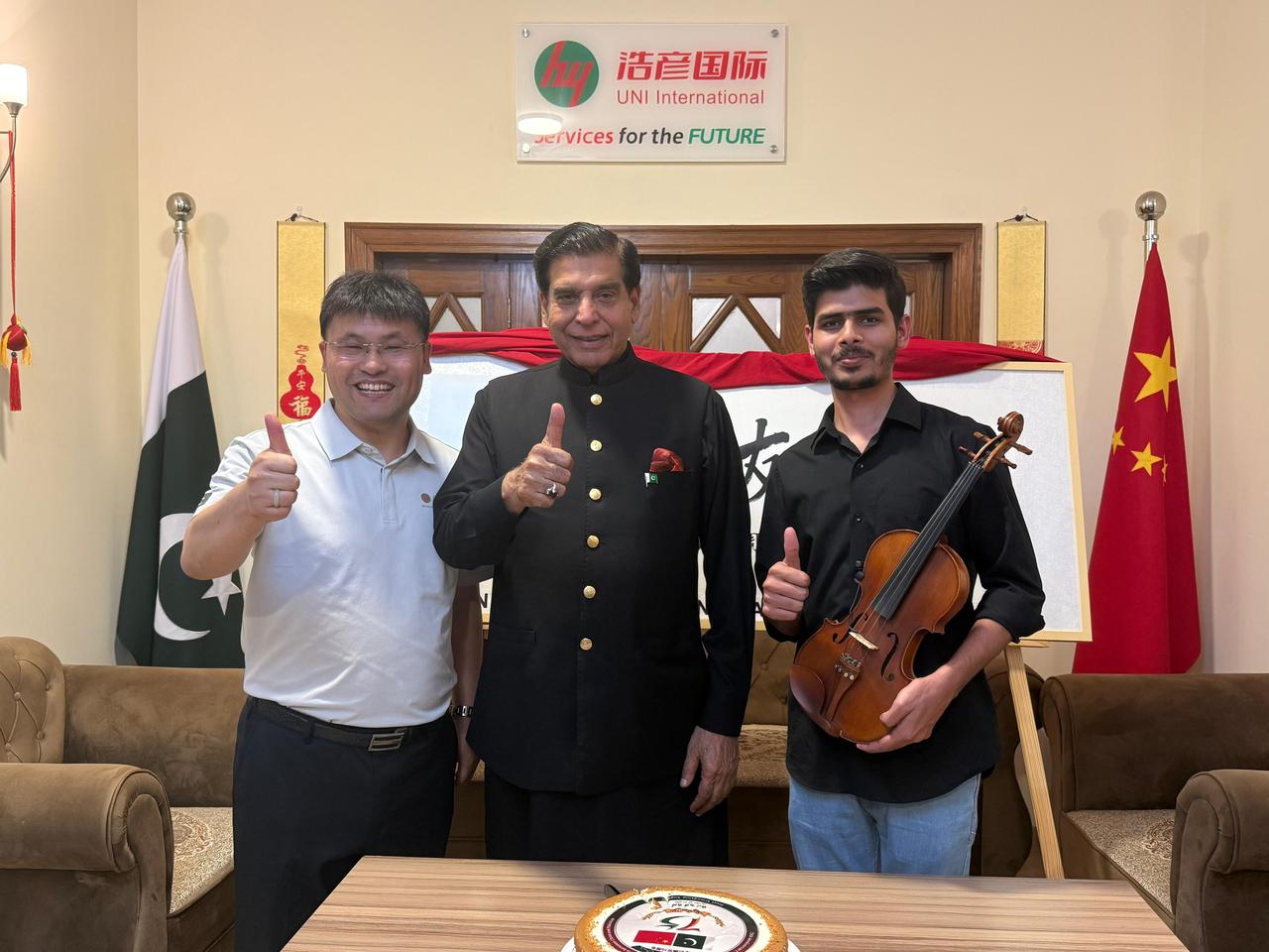 今年是中巴两国建交75周年,2026年4月17号在伊斯兰堡,巴基斯坦前总理、国民议会前议长拉贾·佩尔韦兹·阿什拉夫阁下访巴基斯坦【浩彦国际中巴文化研学中心】,中巴友人共同庆祝中巴建交75周年纪念,深切感受老一辈政界领袖厚重真挚的中巴情谊。中巴友谊长存,其间中巴文化研学中心负责人(马小彦)马总将甘肃庆阳籍书家【杏武科】作品(中巴友谊万岁)作为文化交流礼品赠送给巴前总理(阿什拉夫)收藏。这一时刻是见证中巴友谊的时刻,也是我国传统文化走向世界一刻的见证。