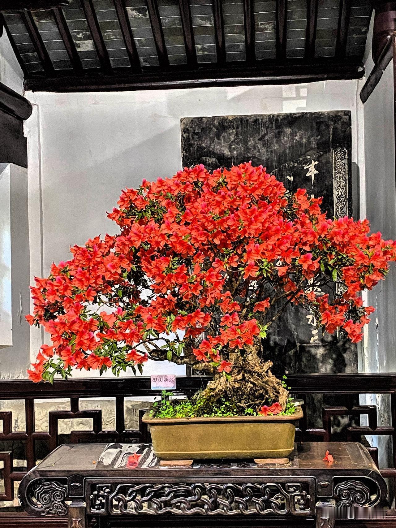 而“湖山凝翠”就像是镶嵌在园中翠玉,叶片翠绿欲滴,充满了生机与活力。那一抹翠绿,与周围的杜鹃相映成趣,构成了一幅和谐的画面。在这翠绿的映衬下,杜鹃显得更加娇艳动人,仿佛是大自然精心雕琢的艺术品。