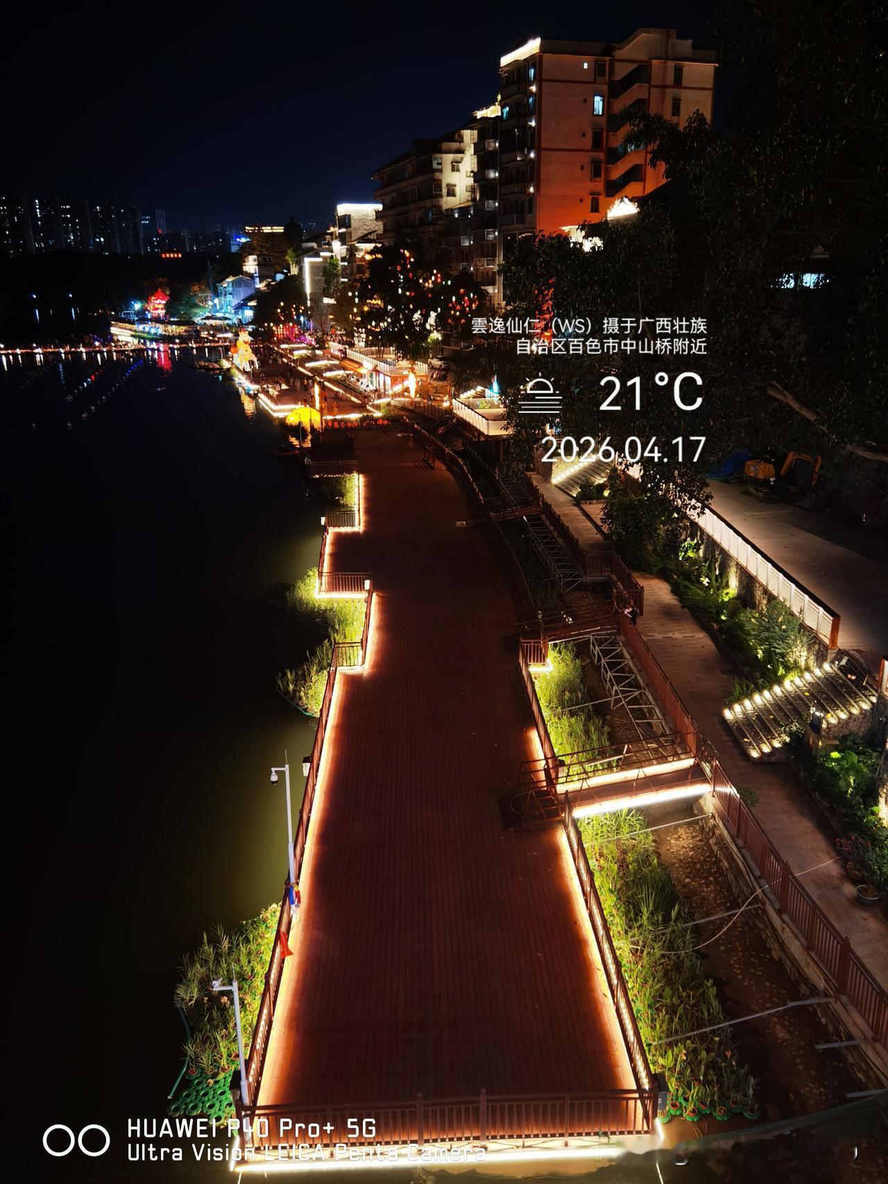 旅居生活记录(8473)广西壮族自治区百色市(158):徒步江滨公园音乐喷泉、百色水岸城、中山桥、解放街、下岗街夜市、那毕大道、万景城夜市、金辉不夜街等,共计走了3万0375,21.69公里。