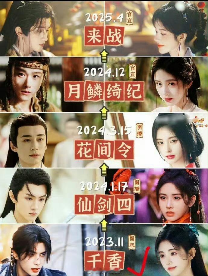 千香也要上了吗?宋威龙鞠婧祎的千香已经压了快两年了👖你现在能把这部剧抬上来不,档期空着也是空着从2023年11月拍到2024年4月哇…千香两年都没抬,你也太难搞了。不过,要是播的话,这个播剧节奏太喜欢了~月鳞绮纪不仅get到了小鞠的美貌,还get到了演技!多多播剧呀