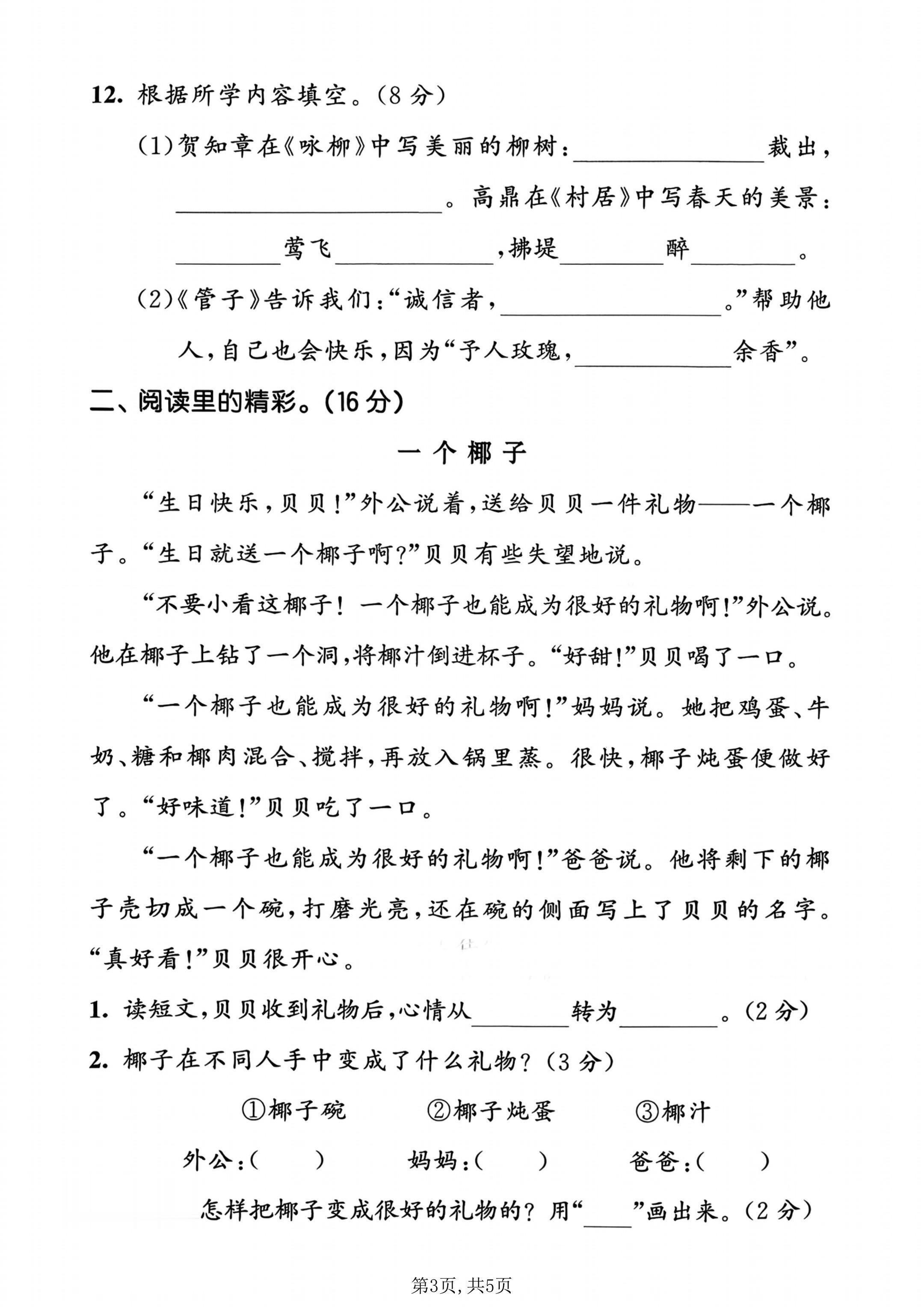 小学二年级下册语文期中测试卷|附答案!你的期中考点 创作者中心 创作灵感 二年级下册语文期中检测卷新鲜出炉📚