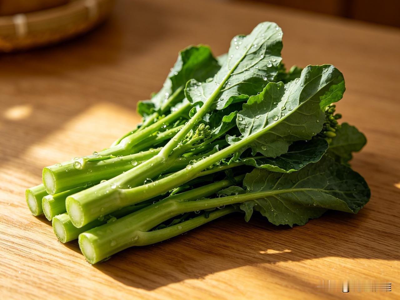 我把白菜苔的黄叶、虫叶去掉后,拿到水龙头底下冲洗三遍。