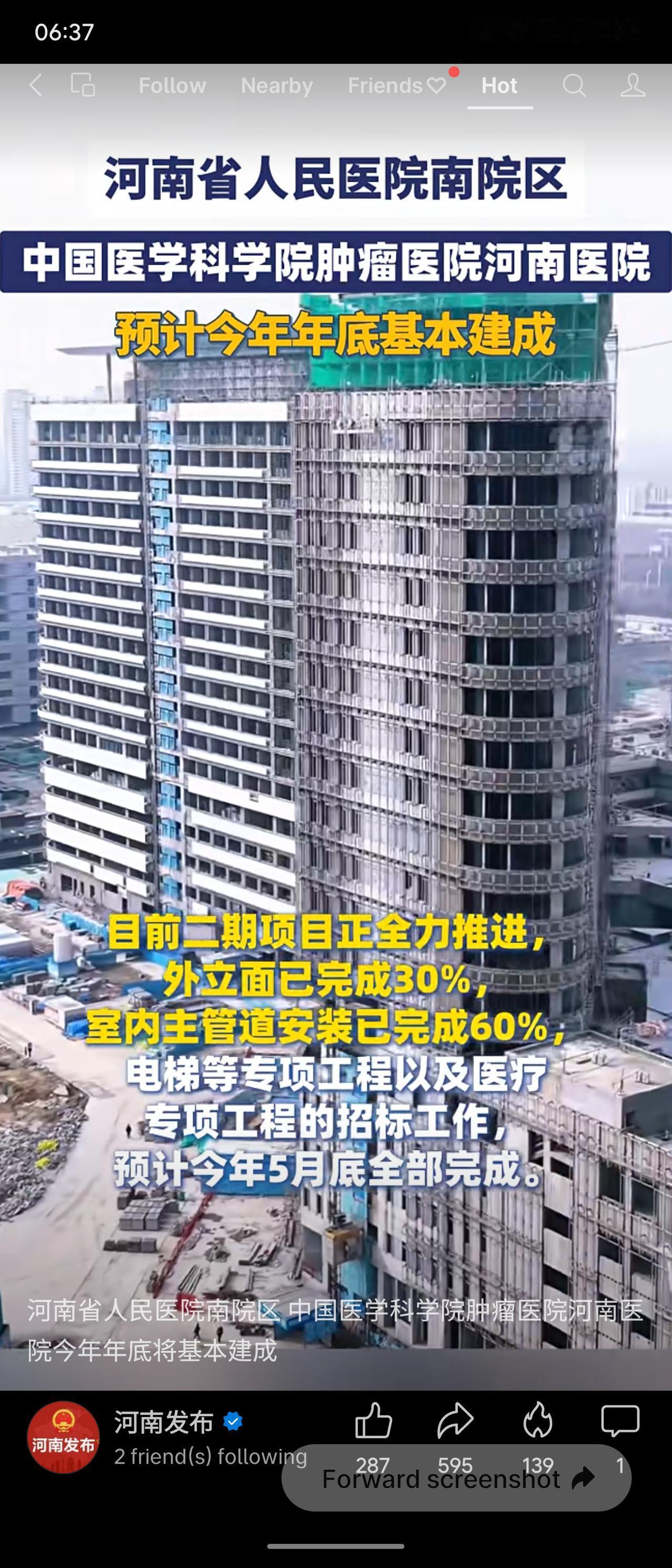 该项目将显著提升河南及周边地区肿瘤诊疗和医疗服务能力,引入智能建造技术体现效率与质量并重,是惠及民生的务实之举。