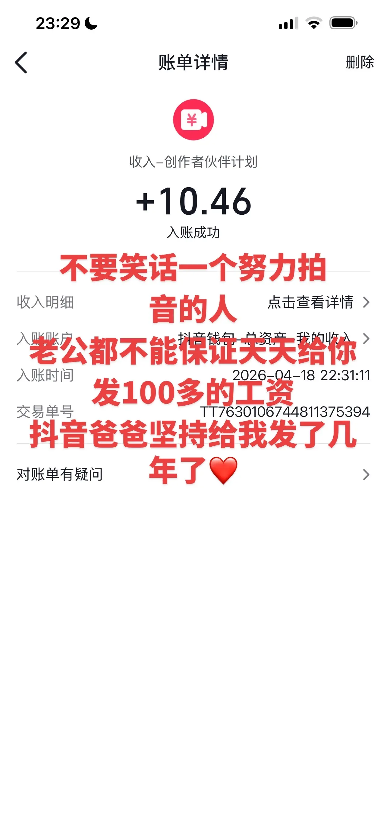 这就是努力拍的意义,一觉醒来爸爸又给我发了一百多的工资,感谢都爸。