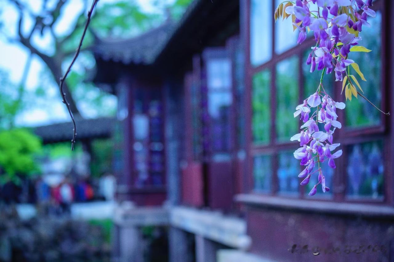此行苏州,只为奔赴心中唯一的紫。园深处,卅六鸳鸯馆外的紫藤,与馆内蓝紫琉璃窗交相辉映,便是我此行最执着的所求。