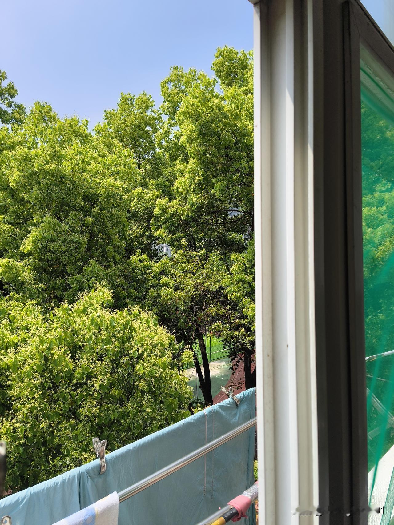窗外的香樟树 窗外的香樟树近在咫尺,正值盛花期,散发出馥郁的清香。