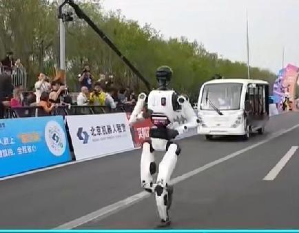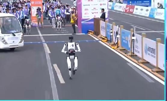 人形机器人半马太酷了!自主导航竞技超有看点,闪电率先出发超燃,科技感拉满,期待后