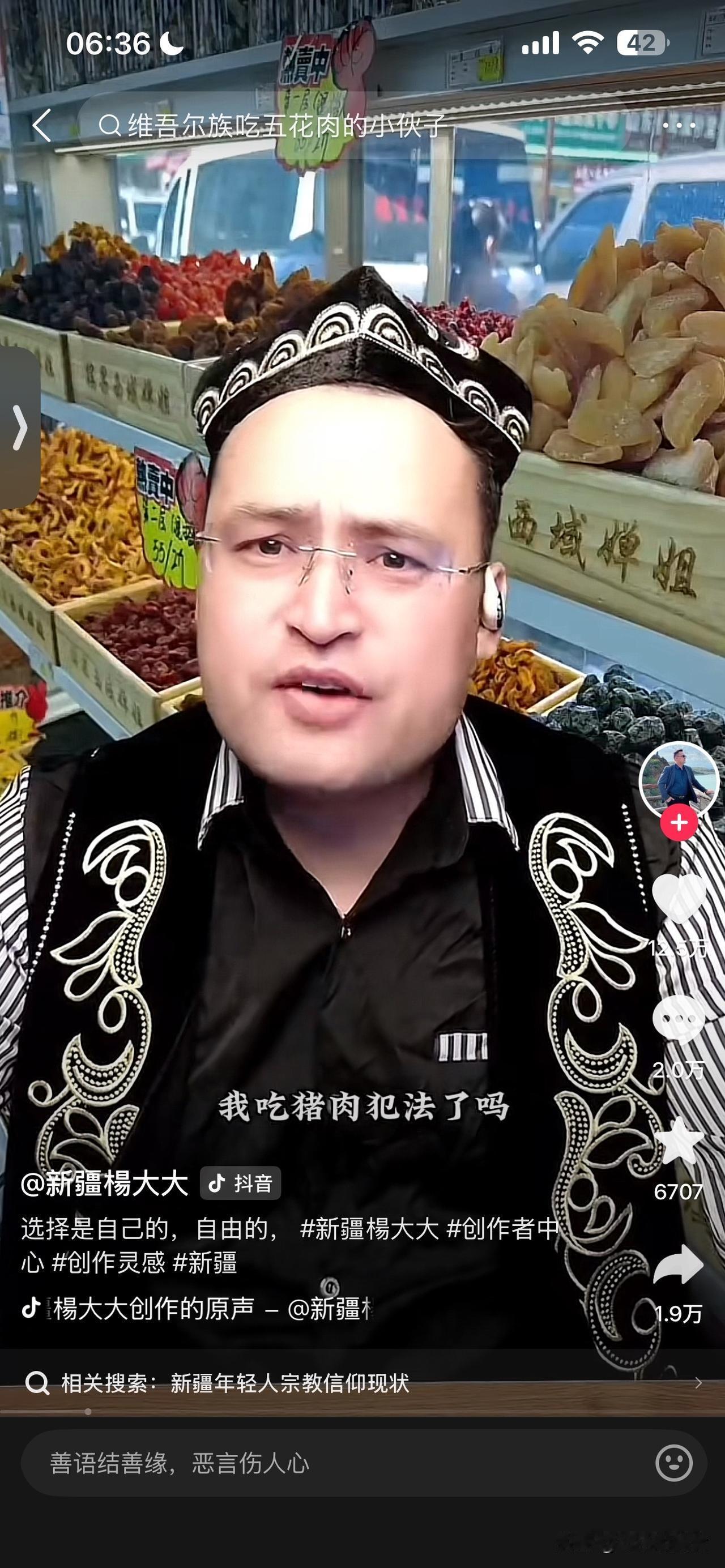 最近看了抖音的杨大大,一个新疆的维吾尔族小伙子吃猪肉的视频火了,说话向来直来直去,不绕弯子!我的立场很坚定坚决支持杨大大的做法!