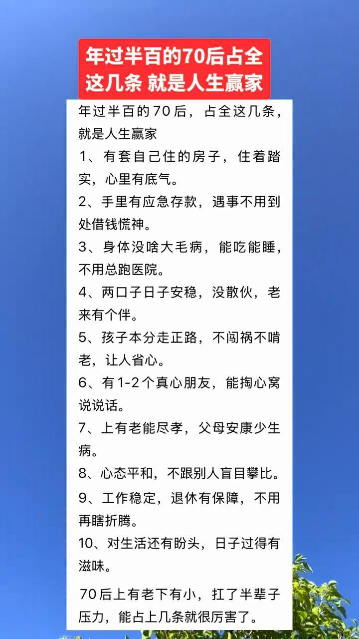 70后上有老下有小,扛了半辈子压力,能占上几条就很厉害了。