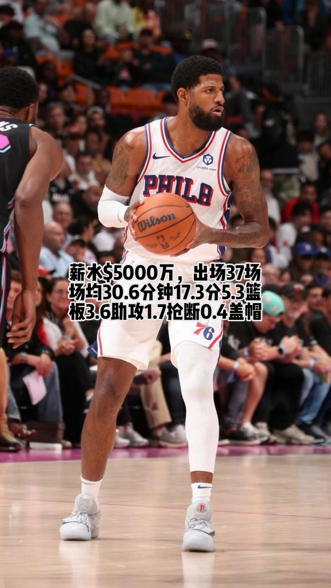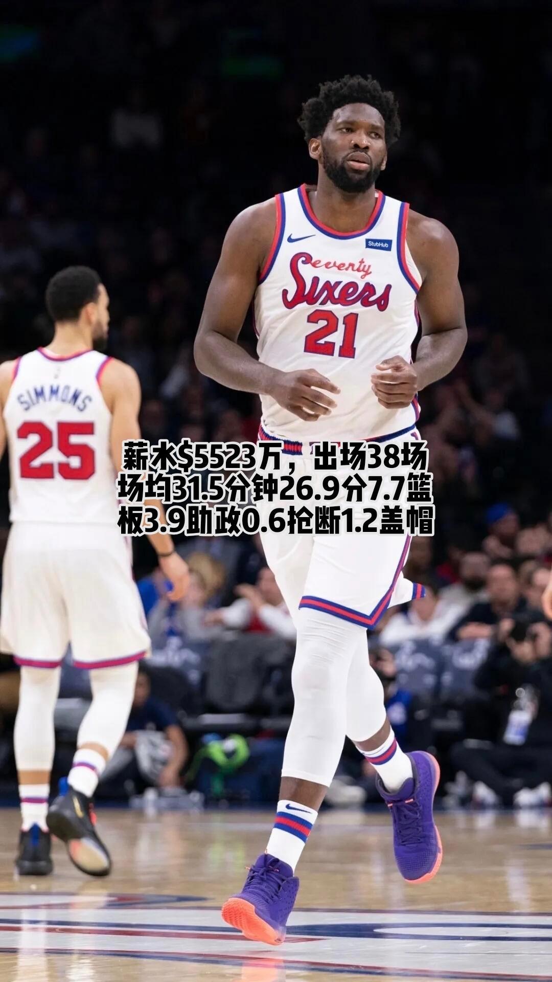 本赛季薪水五千万球员出场排名1、凯文-杜兰特(78场)2、卡尔-安东尼-唐斯(76场)3、杰伦-布朗(71场)4、尼古拉-约基奇&科怀-伦纳德(65场)5、德文-布克(64场)6、勒布朗-詹姆斯(60场)7、斯蒂芬-库里(43场)8、乔尔-恩比德&吉米-巴特勒(38场)9、保罗-乔治(37场)10、扬尼斯-阿德昆托博(36场)11、安东尼-戴维斯(20场)12、杰森-塔图姆(16场)