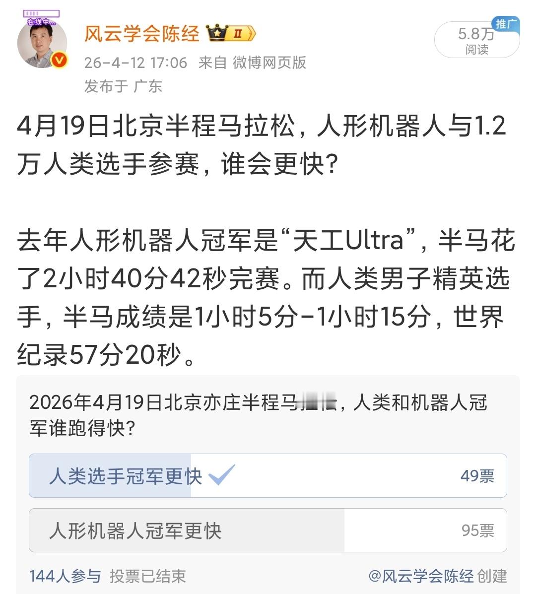 300个机器人跑半马 人类选手输大了,机器人破人类世界纪录跑进50分钟我一周前开