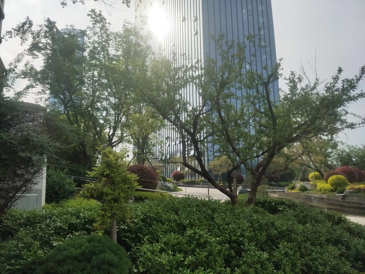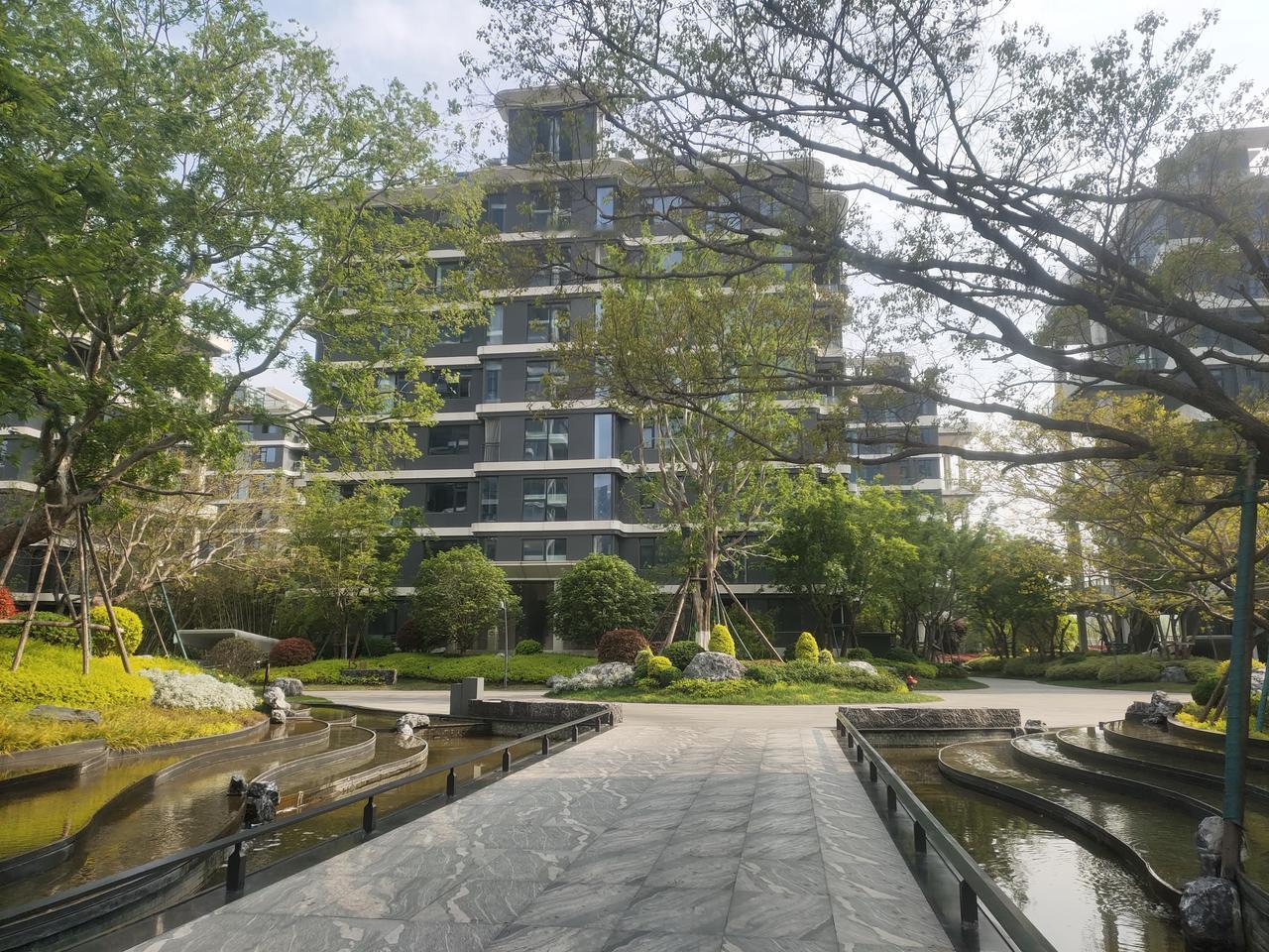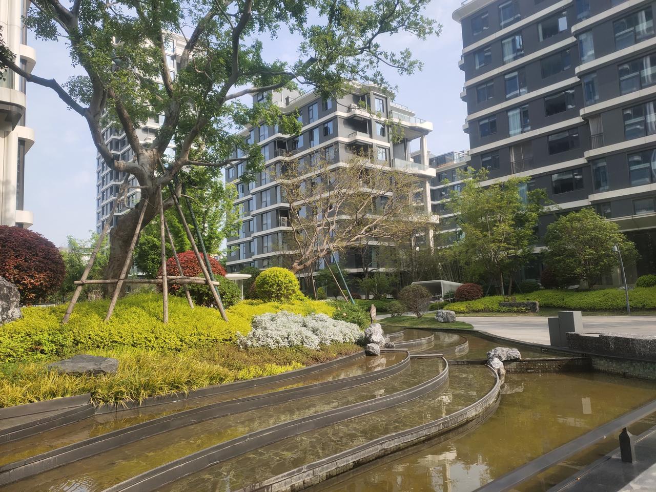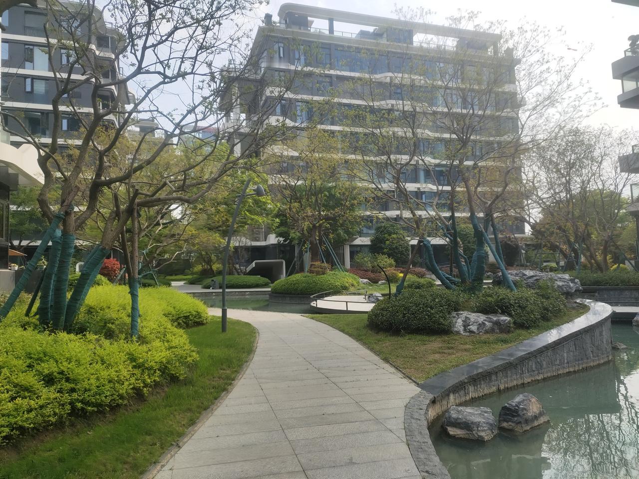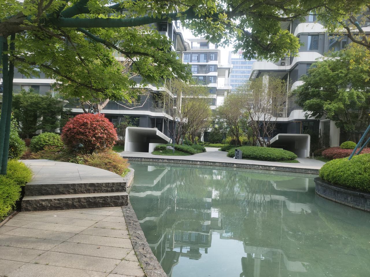 早晨的小区绿意盎然,空气清新,静谧的池塘与高楼相映成趣。😊🌿