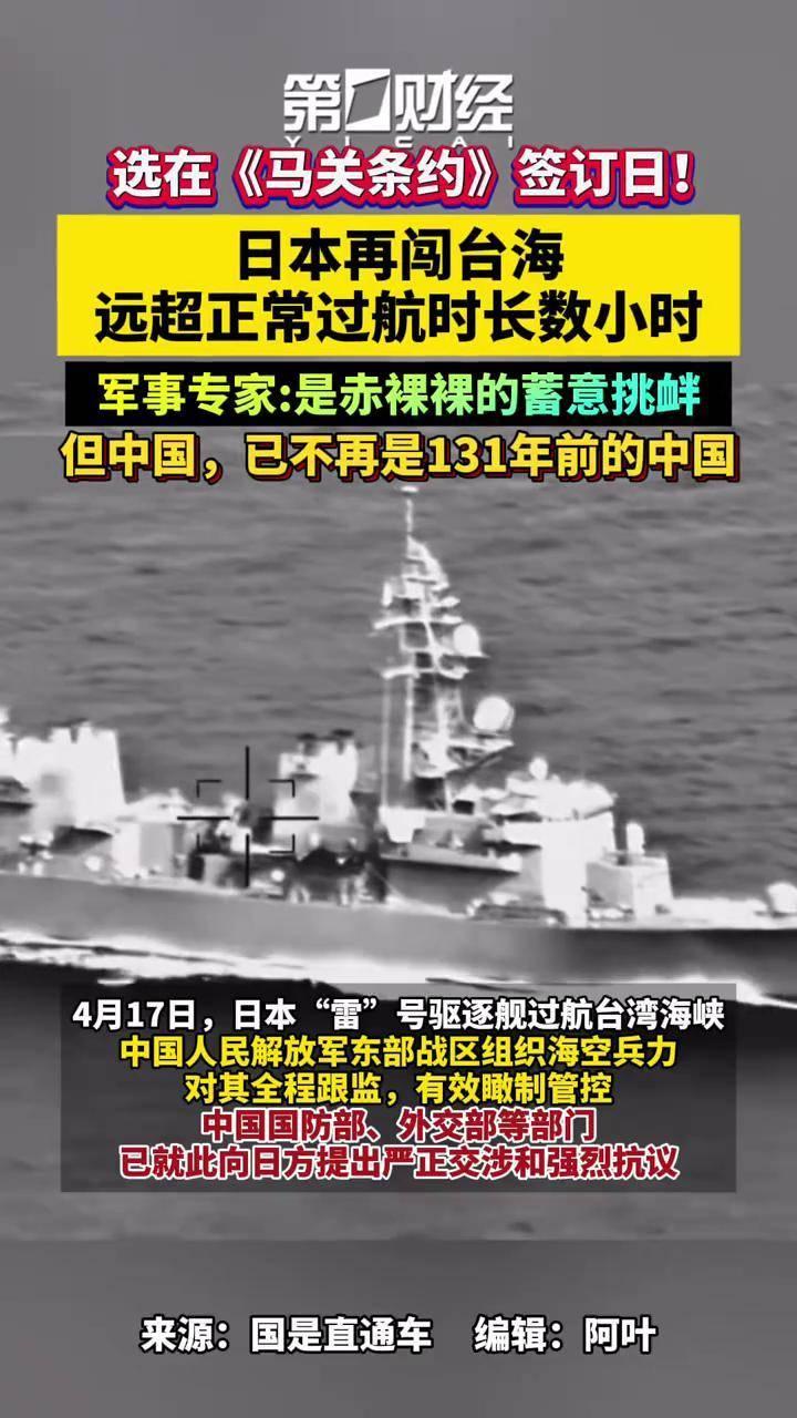 高SIR:1895年4月17日,清政府被迫签署丧权辱国的《马关条约》,台湾、澎湖列岛从此蒙难。而在《马关条约》131周年的同一天,日本海上自卫队「雷」号驱逐舰竟公然过航台湾海峡。这不仅是对中华民族历史痛点的粗暴践踏,更是对当前国际法准则与台海和平稳定的严重威胁。此次行动绝非所谓的「正常过航」。根据监控数据显示,日舰过航台海长达14小时。按照常规航速,通过该海域仅需9至10小时,而日舰却以极其缓慢的速度低速盘桓,这种「散步式」的航行完全是在耀武扬威,是赤裸裸的军事示威与政治恫吓。日方明知当日是具有特殊历史意义的敏感日子,却执意派遣军舰前来滋扰,这种蓄意挑衅一错再错的行径,再次暴露了日方内部某些势力企图武力介入台海、死抱军国主义残梦的危险图谋。近年来,日本在安保政策上「转守为攻」,从加速列装「战斧」导弹,到在距离台湾仅百余公里的岛屿部署防空部队,其军事野心正不断膨胀。此次日舰配合政客的错误言论在台海兴风作浪,实质上是向「台独」势力发出严重的错误信号。对此,中国人民解放军东部战区组织海空兵力全程跟监警戒,实施有效规制管控,以绝对的实力瞰制了日方的非法行径。历史的车轮滚滚向前,高SIR和伙伴们必须正告日方:别忘了中国已不是131年前的中国。今日之中国,拥有捍卫国家主权和领土完整的坚强决心、坚定意志与强大能力。中国军队枕戈待战,绝不允许任何外部势力在中国家门口横行霸道。日方若不思悔改,继续在台湾问题上玩火自焚,最终必将付出不可承受的代价。正义之剑早已出鞘,任何挑衅国家安全的行径,必将遭到迎头痛击!