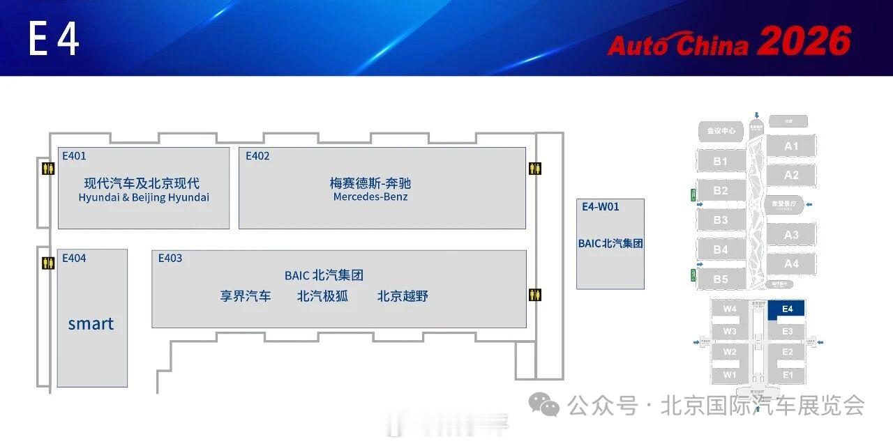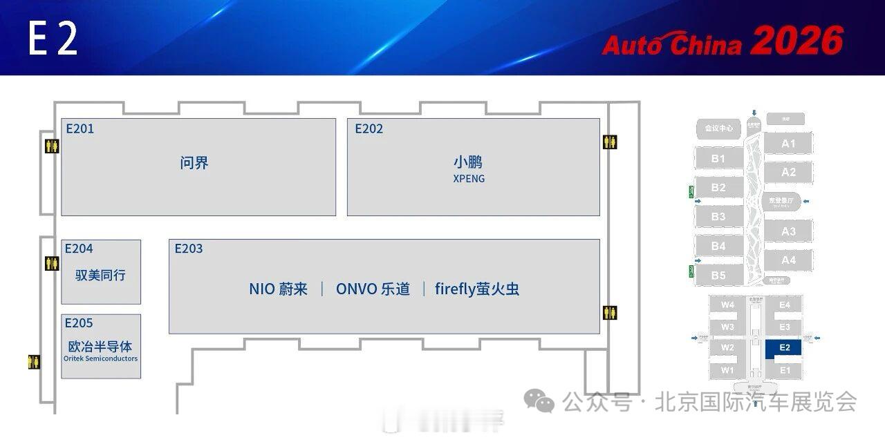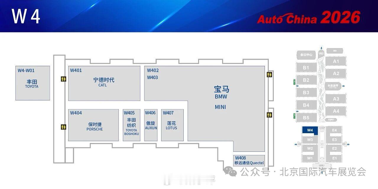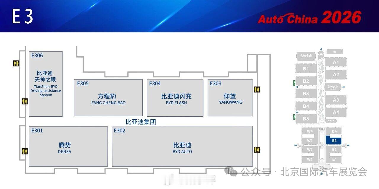 2026北京车展展位图发布,展馆面积比较大的品牌有:比亚迪、大众、华为鸿蒙智行、宝马、长城、吉利、广汽、蔚来、奔驰、奇瑞。