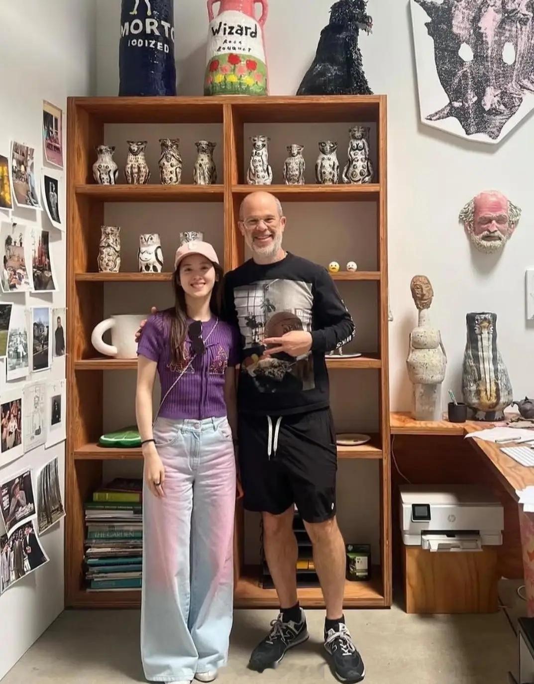 33岁章泽天去参观洛杉矶一位艺术家的工作室,她的穿衣打扮时尚有型大方又不失个性,