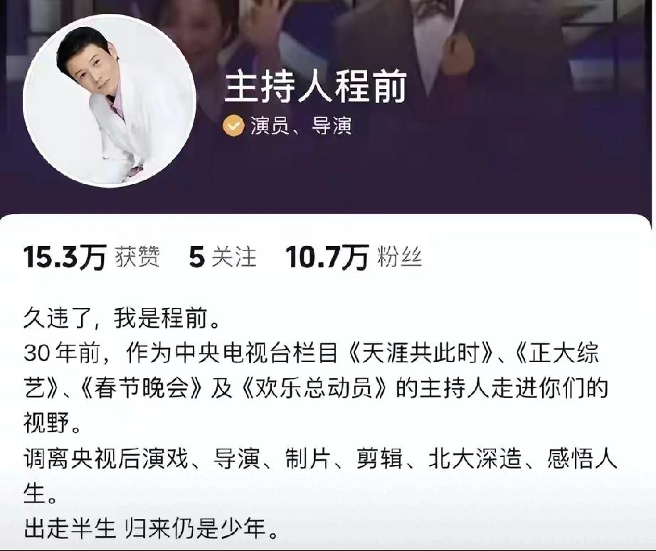 程前与董卿因工作相恋,低调相守多年,却因事业追求不同遗憾分手。离开央视后,他跨界转型当演员、做导演,闯出一片天。