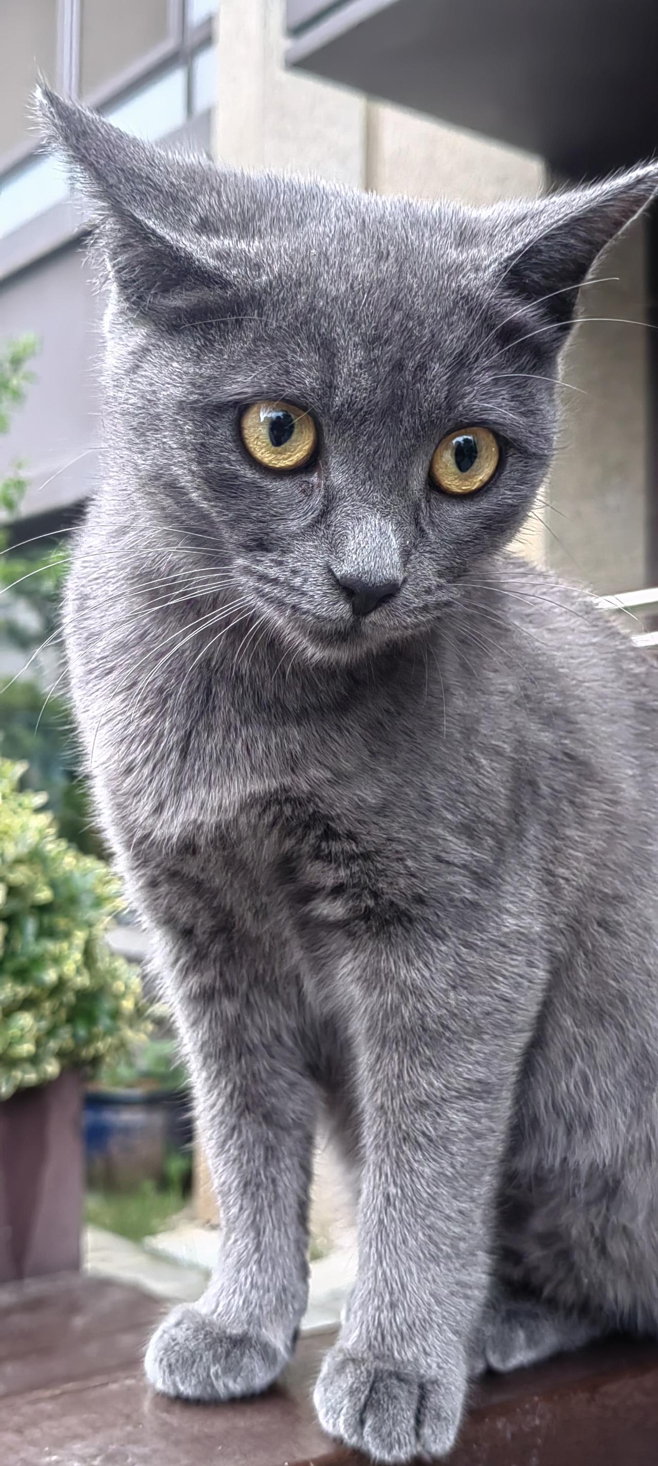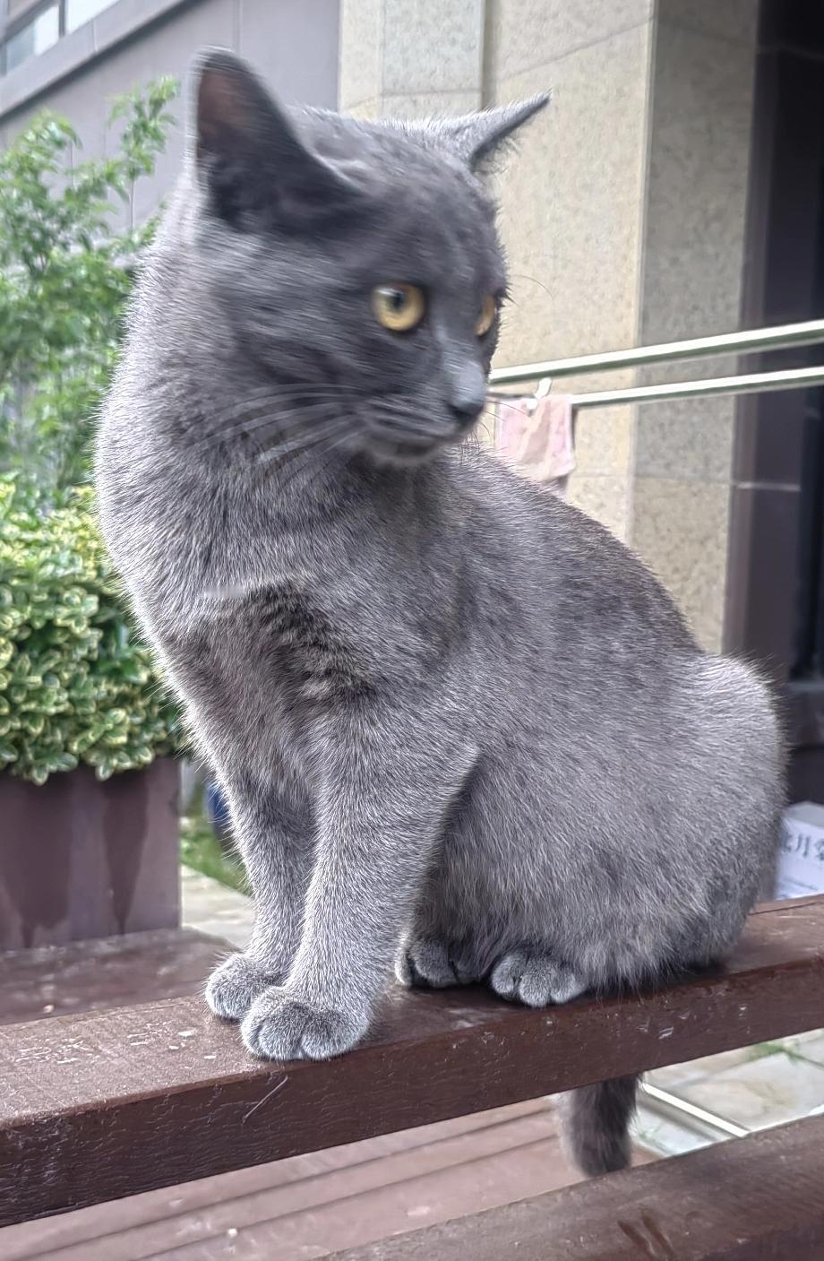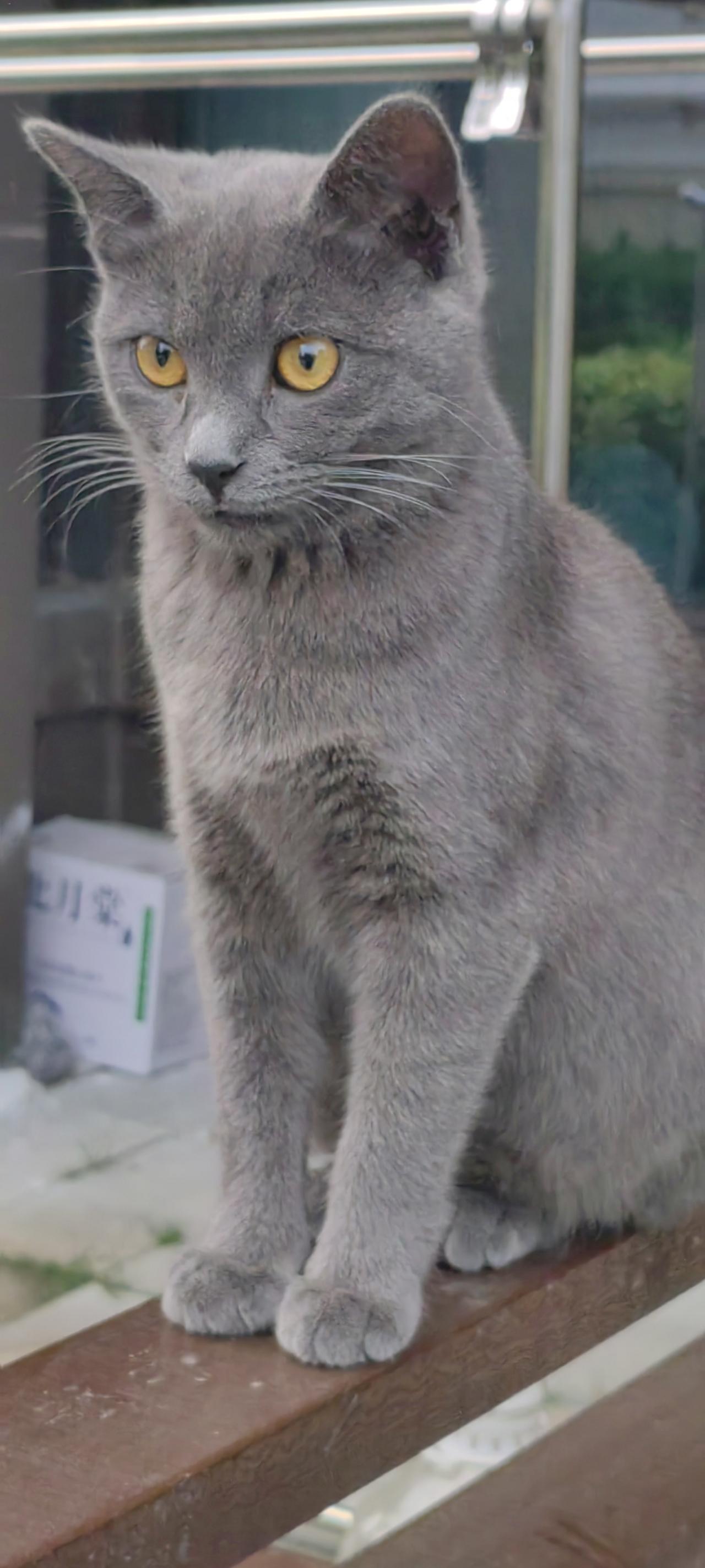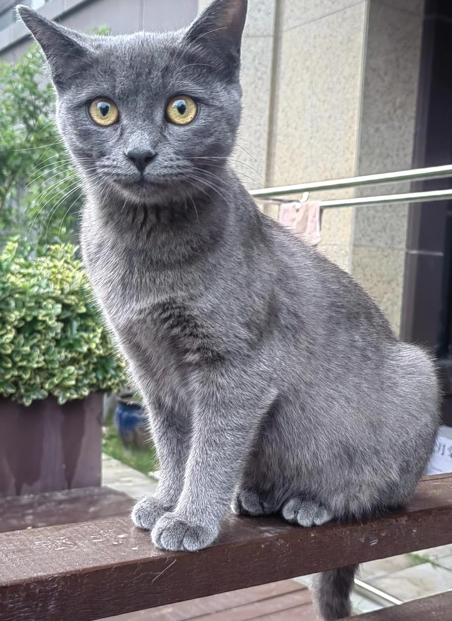 这是一只美国蓝猫和中华狸花猫生下的一只混血小蓝猫。它非常聪明,平时我们讲的啥它都能听懂。混血的可能都比较聪明。从不和小狗打架。是我楼下邻居养的一只半周岁的小蓝猫公猫。