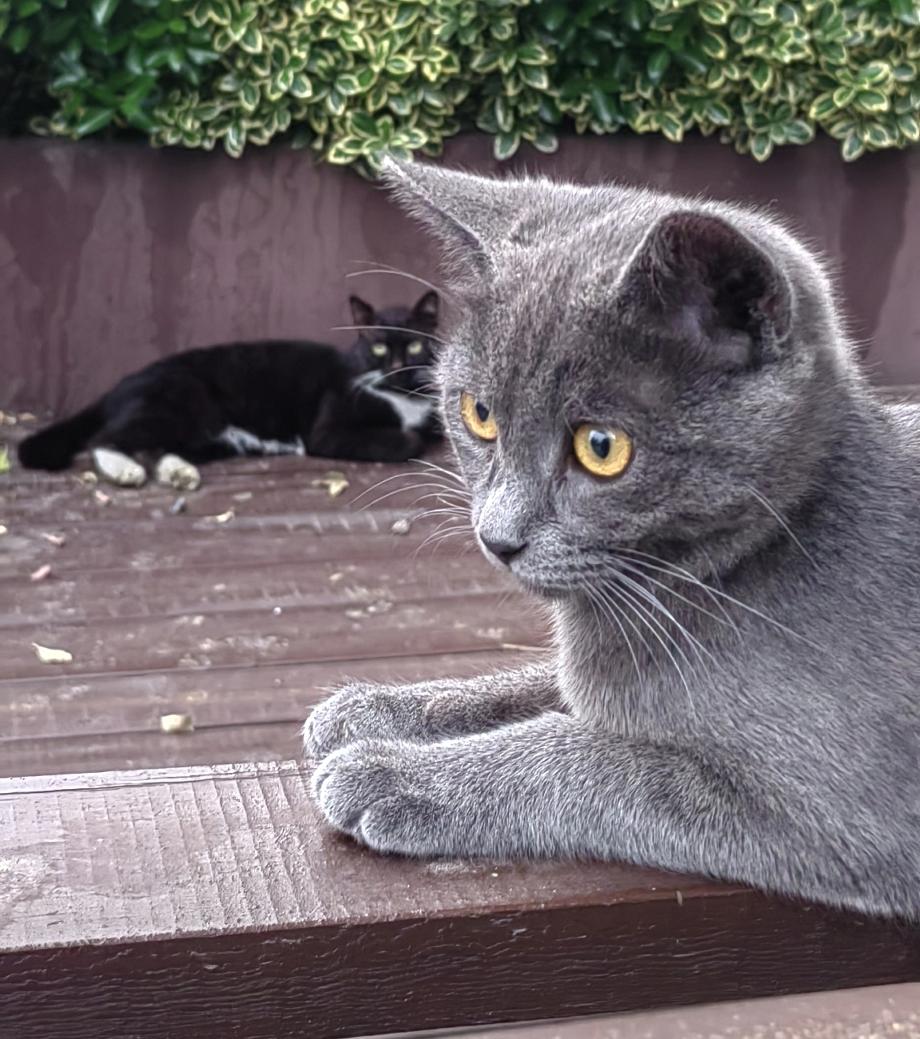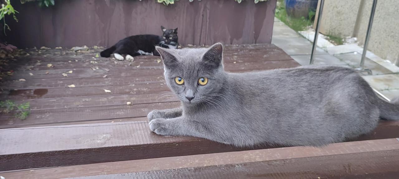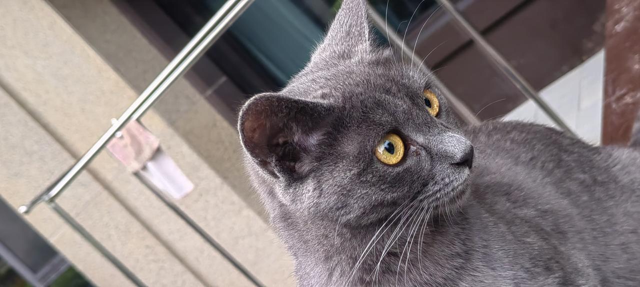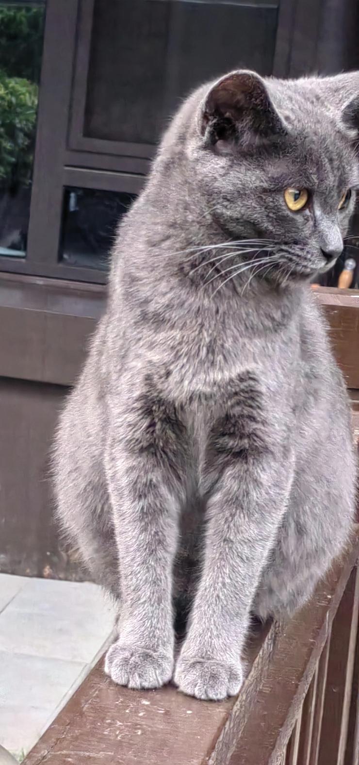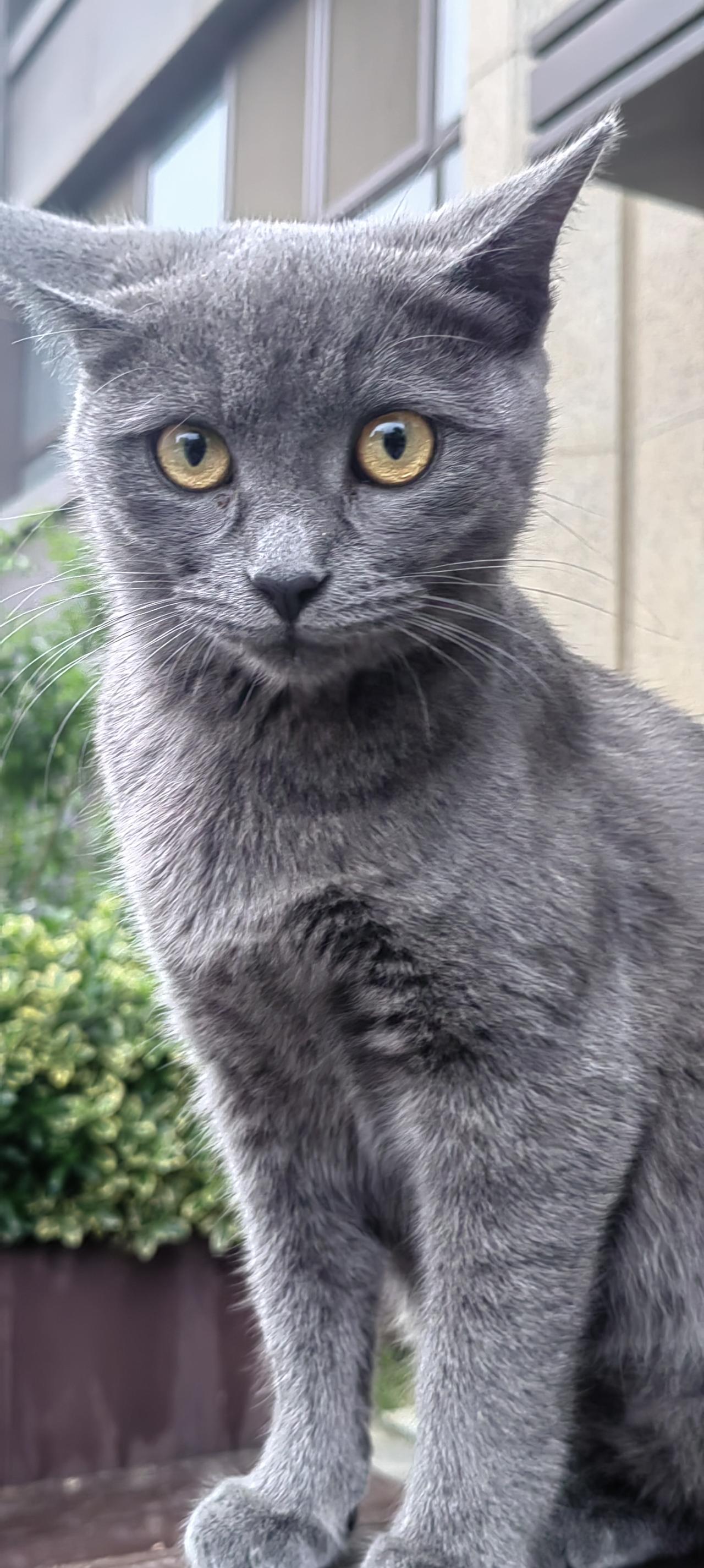 这是一只美国蓝猫和中华狸花猫生下的一只混血小蓝猫。它非常聪明,平时我们讲的啥它都能听懂。混血的可能都比较聪明。从不和小狗打架。是我楼下邻居养的一只半周岁的小蓝猫公猫。