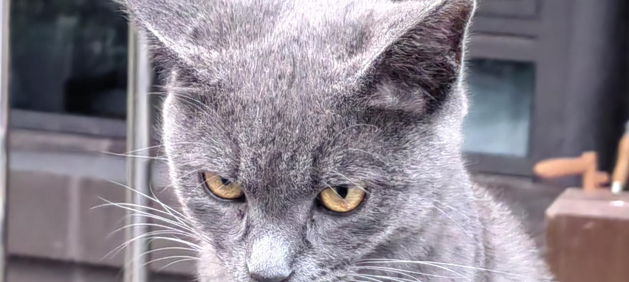 《一只小蓝猫》 这是一只美国蓝猫和中华狸花猫生下的一只混血小蓝猫。