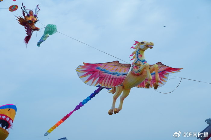【#全球2370只风筝都来潍坊啦#】4月18日,2026“发现宝藏山东”主题旅游年、第43届潍坊国际风筝会暨2026潍坊风筝嘉年华在世界风筝公园盛大开幕。本届风筝会以“跃马山海行 奋进万亿城”为主题,来自全球各地的风筝爱好者齐聚“世界风筝都”,共赴这场春日蓝天之约。
