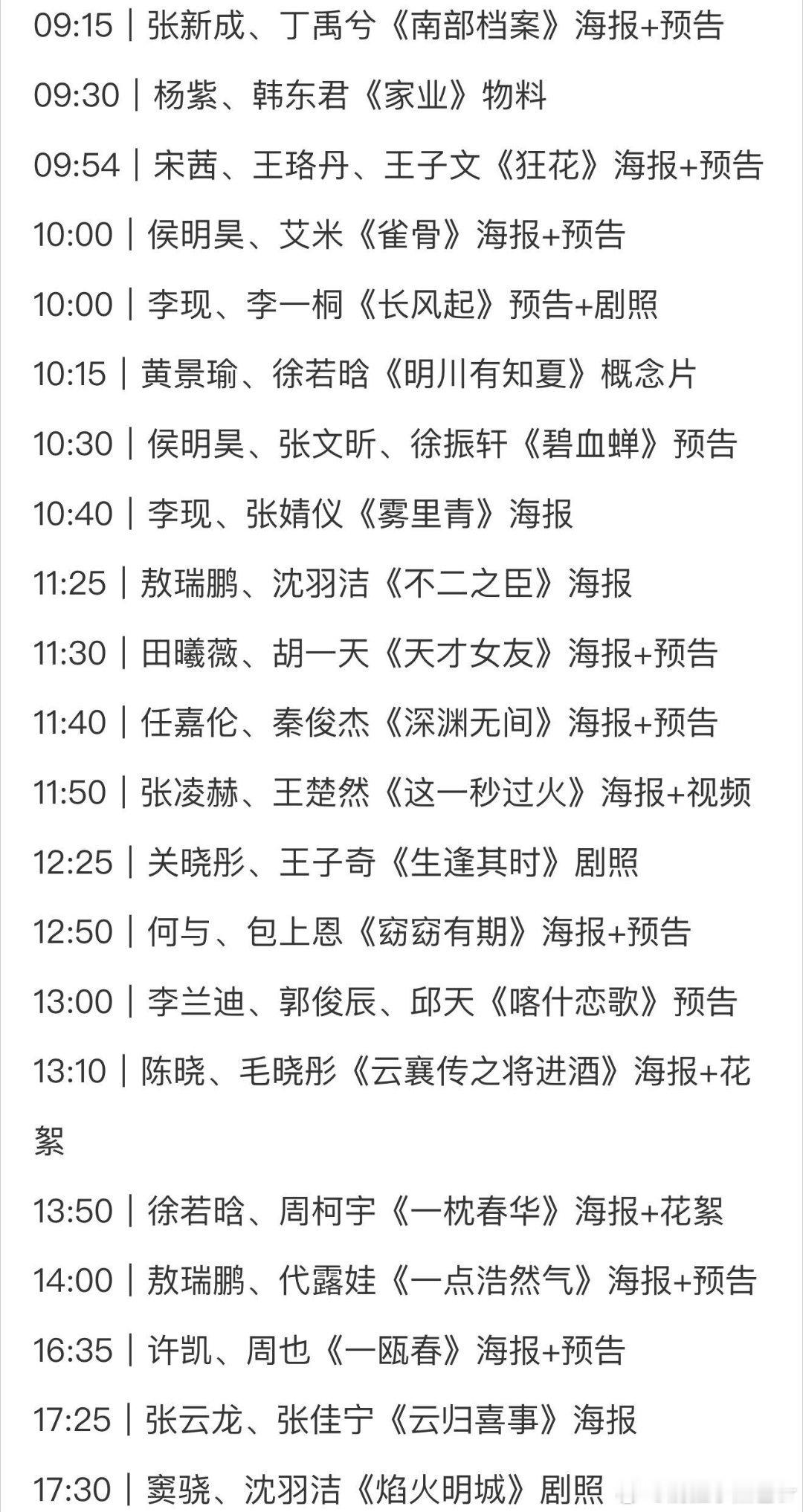 4.19圈内小🍉叮🔔给大家带来今天的🍉1.李冰冰 尚美巴黎2.刘宇宁 海飞丝 升最高t2.宋祖儿 苏菲(马上要来!)3.蔡依林 兰蔻(马上要宣了!)4.王一博 台铃代言人续签+14.关晓彤sw 日用品 饮品 品牌续签 🧥5.丁禹兮sw 食品 服饰还有杂志,尔木萄 4.27官宣6.鞠婧祎《万花世界》5月开机7.周柯宇、包上恩《炽夏》暂定6月16日开播8.《攻玉》侯明昊、鹤男,演员或导演可能有变动9.宋威龙、张婧仪《野狗骨头》7.5左右芒果TV+湖南卫视播出10.悬疑剧《炬火》许魏洲、郭俊辰,预计4.28开机,拍摄周期55天11.《许你星河千里》丞磊、沈羽洁,预计5.27开机,拍摄地:新疆、西安、甘肃等地