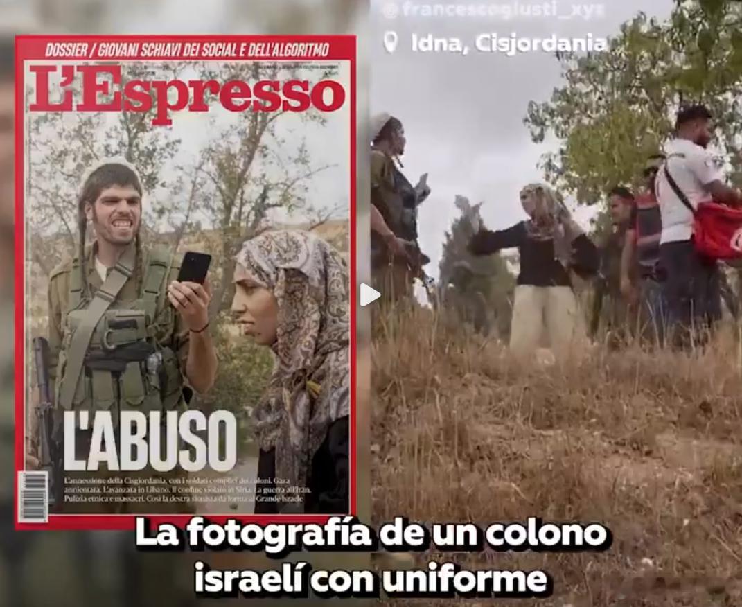 一个以色列士兵火了,火遍全球那种,而且还成了以色列军队的最佳代言人。4月10日,意大利《快讯》杂志(L’Espresso)刊封面采用摄影师彼得罗·马斯图尔佐2025年10月12日在约旦河西岸拍摄的照片:一名全副武装的以色列定居者模仿牧羊人驱赶牲畜的声音,对巴勒斯坦妇女露出狰狞表情,标题为“虐待”。