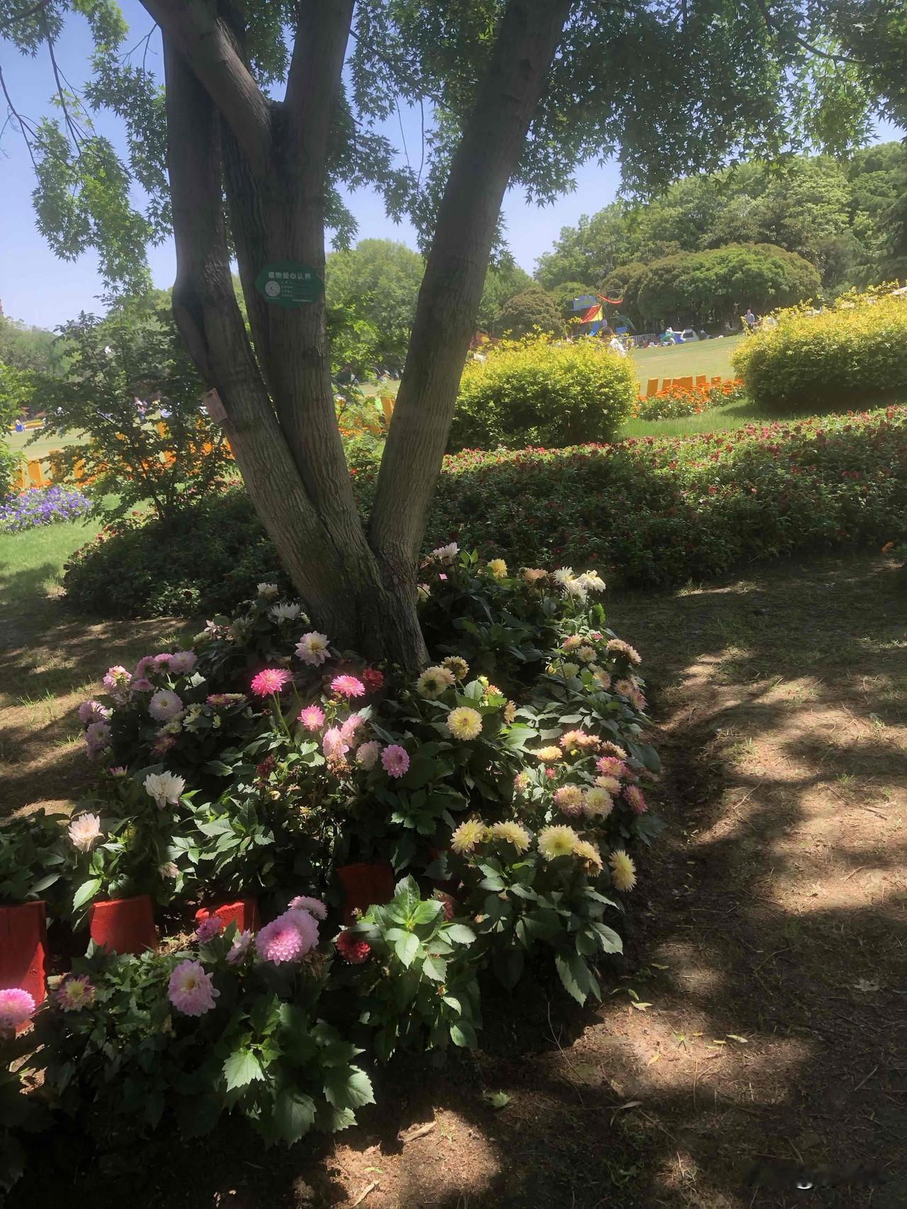 今天天气晴朗,阳光灿烂,逛公园随手拍的,树底下这一片大丽花也太好看了吧!粉的、红的、黄的挤在一起,热热闹闹的,开得又大又艳,像一个个圆滚滚的小绣球,旁边的草坪上全是帐篷,生活里的小美好,大概就是这样吧分享一张随手拍的花 大丽花图鉴