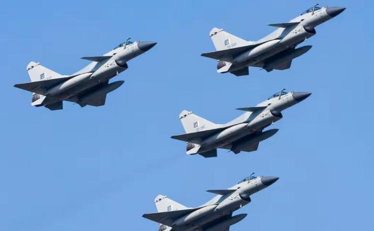 之前的图片显示伴飞护航的是JF-17C枭龙III,J10CE应该是列阵建立空中龙墙