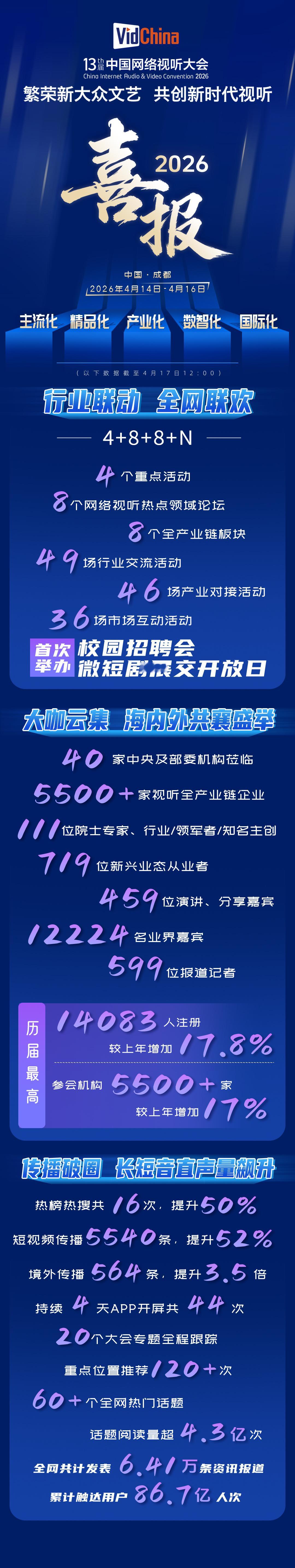 第十三届中国网络视听大会喜报喜报!本次大会从前沿趋势到重磅成果,从思想交锋到行业