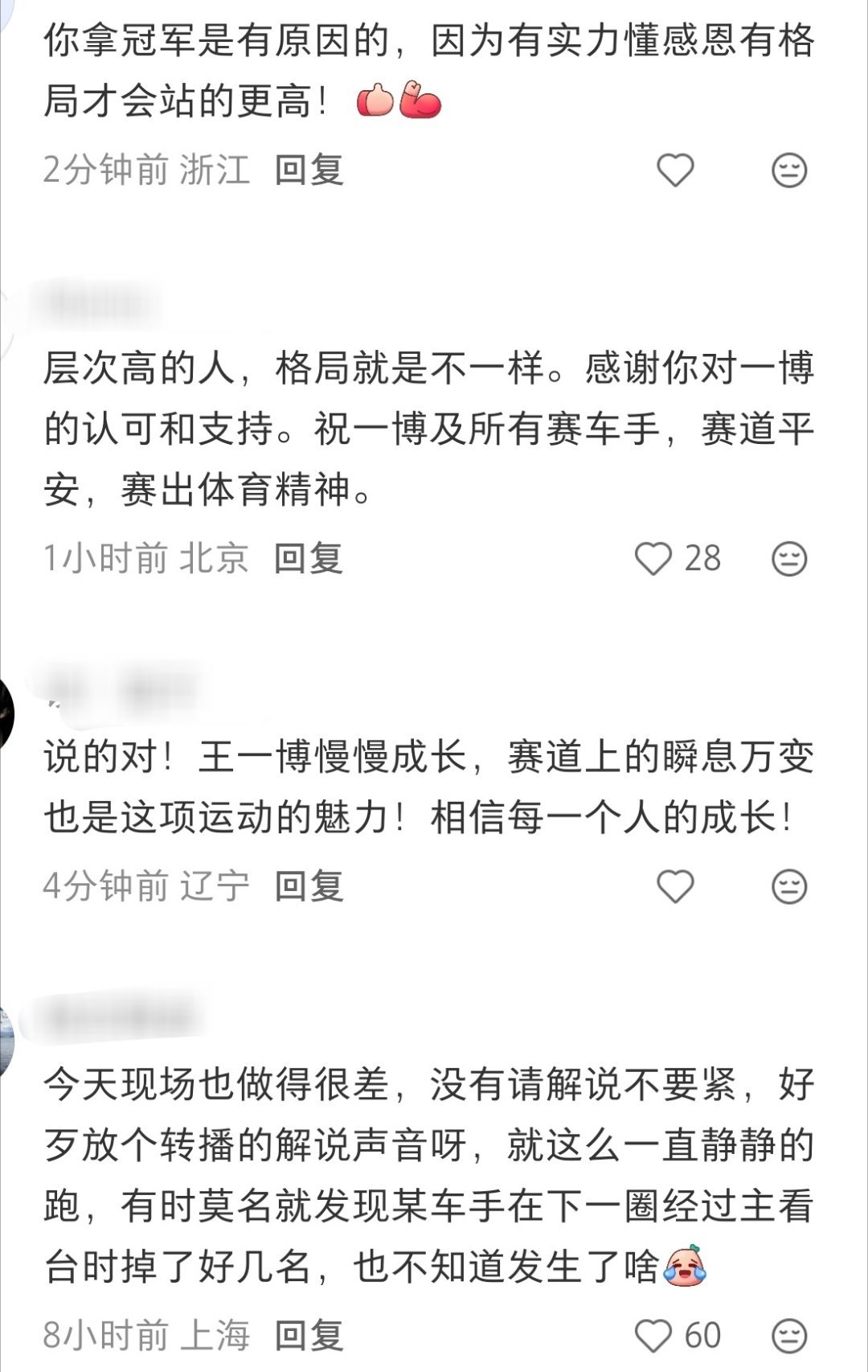 更戳心的是这位冠军车手说的:大家应该给王一博最大的支持和鼓励。他选的是一条最“硬”的路——没有任何暗箱操作,顶级的GT3赛事,直接和世界顶尖车手硬碰硬,公平公正,毫不畏惧竞争。就这一点,已经赢下了无数行业内车手的发自内心的respect。