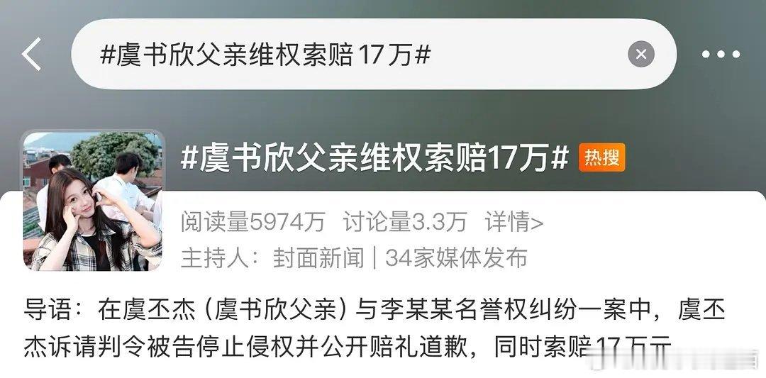 虞书欣父亲维权索赔17万败诉,法院认为:父女俩要求素人道歉将引起新一轮网暴未成年人