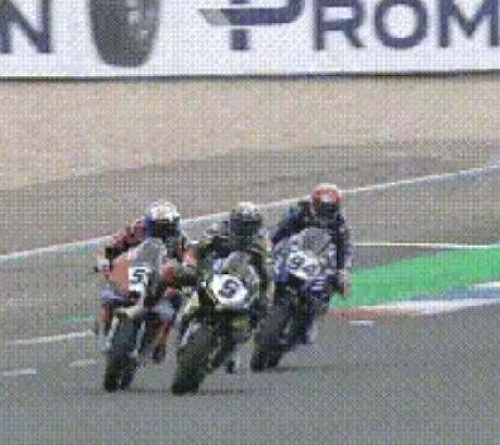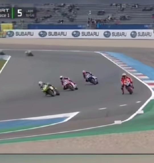 过弯的时候杜卡迪的5号明显把张雪往外挤了一下,导致后面的两台雅马哈车手直接超过去,张雪真是被一群车手针对了…冲线后,杜卡迪的5号跟雅马哈的车手互相庆祝了一下:终于把张雪搞下去了~