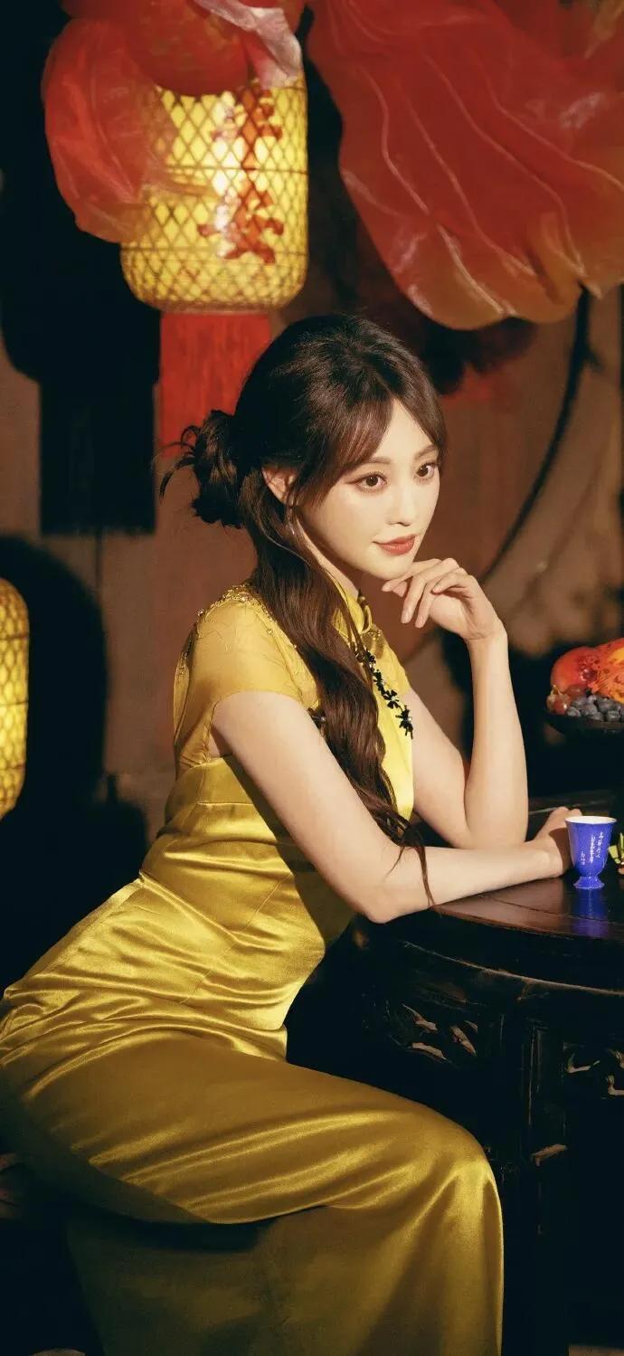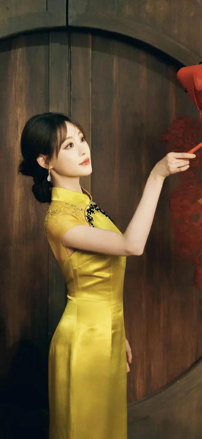 美女壁纸~祝绪丹,明黄缎面旗袍则晕开暖光,珠花与玉耳坠衬得温婉明艳,执扇或点红的姿态里,藏着老时光里的柔婉风情,将东方女性的优雅与明媚揉得恰到好处