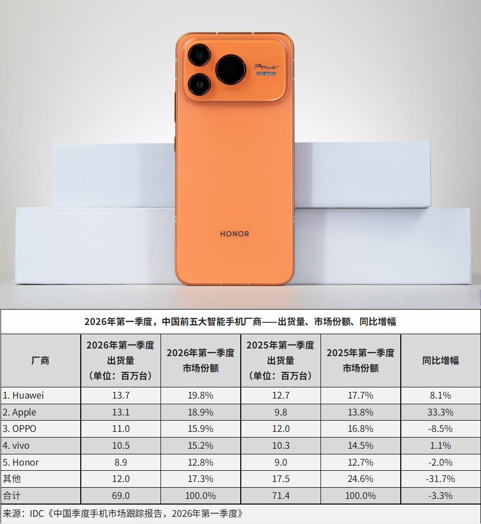 有人说华为回归之后,第一个遭殃的是荣耀,但实际结果显示荣耀依旧是第五名,韧性还是有的,跟去年同期市场份额基本没变