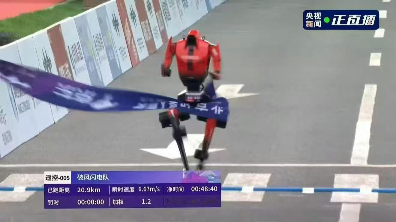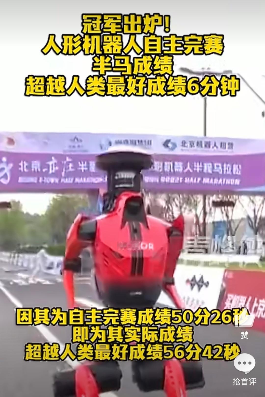 半程马拉松约21.09公里,这也是人类历史上首次机器人超越人类最好成绩56分42秒,也是目前地球人跑的最快的机器人了,兄弟们这才短短一年啊,一年啊兄弟们,这是什么概念?荣耀才用了一年时间,就把一众机器人大厂给干掉了,在这之前谁敢想啊??而且包揽了冠亚季军 荣耀机器人打破人类半马纪录