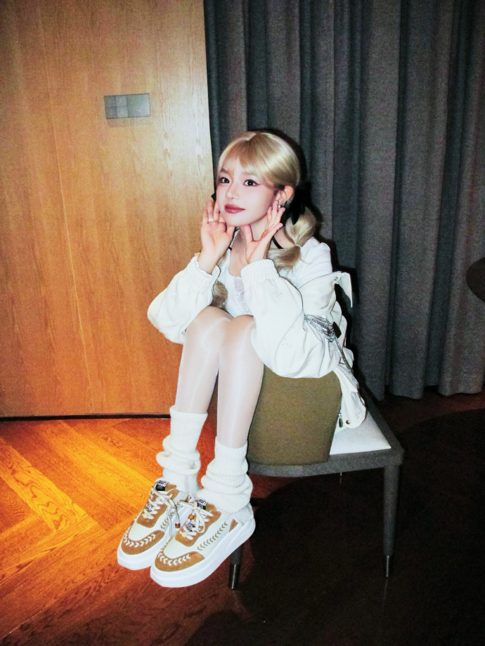 黄霄云 x 油亮肉丝小白袜叠穿