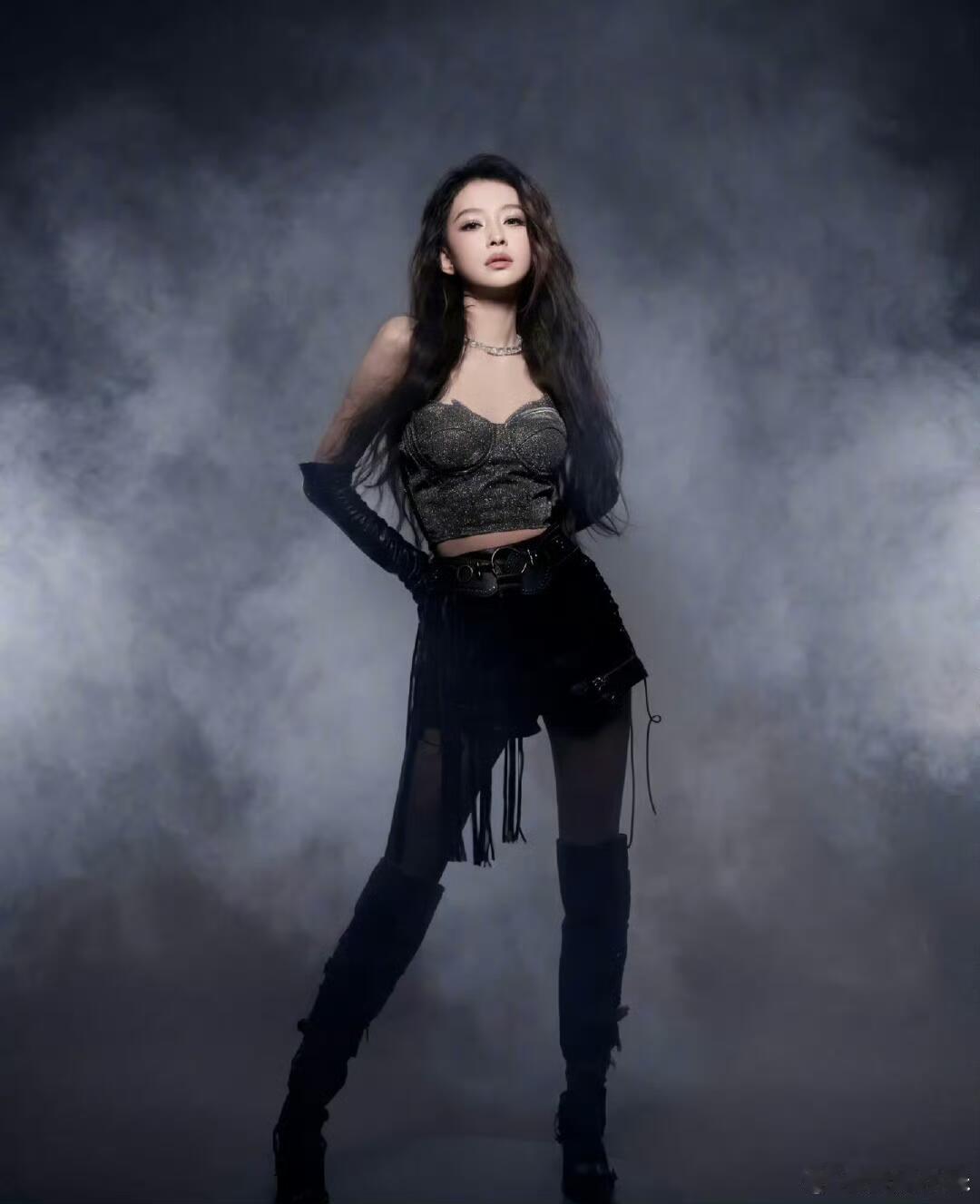 核心在于材质碰撞。利用硬挺皮质、绑带设计与流苏闪钻,在舞台灯光下折射出极强的视觉张力。这种“重工”感不仅能支撑起气场,还能通过细节的动态飘逸感,打造出又A又飒的冷艳姿态。
