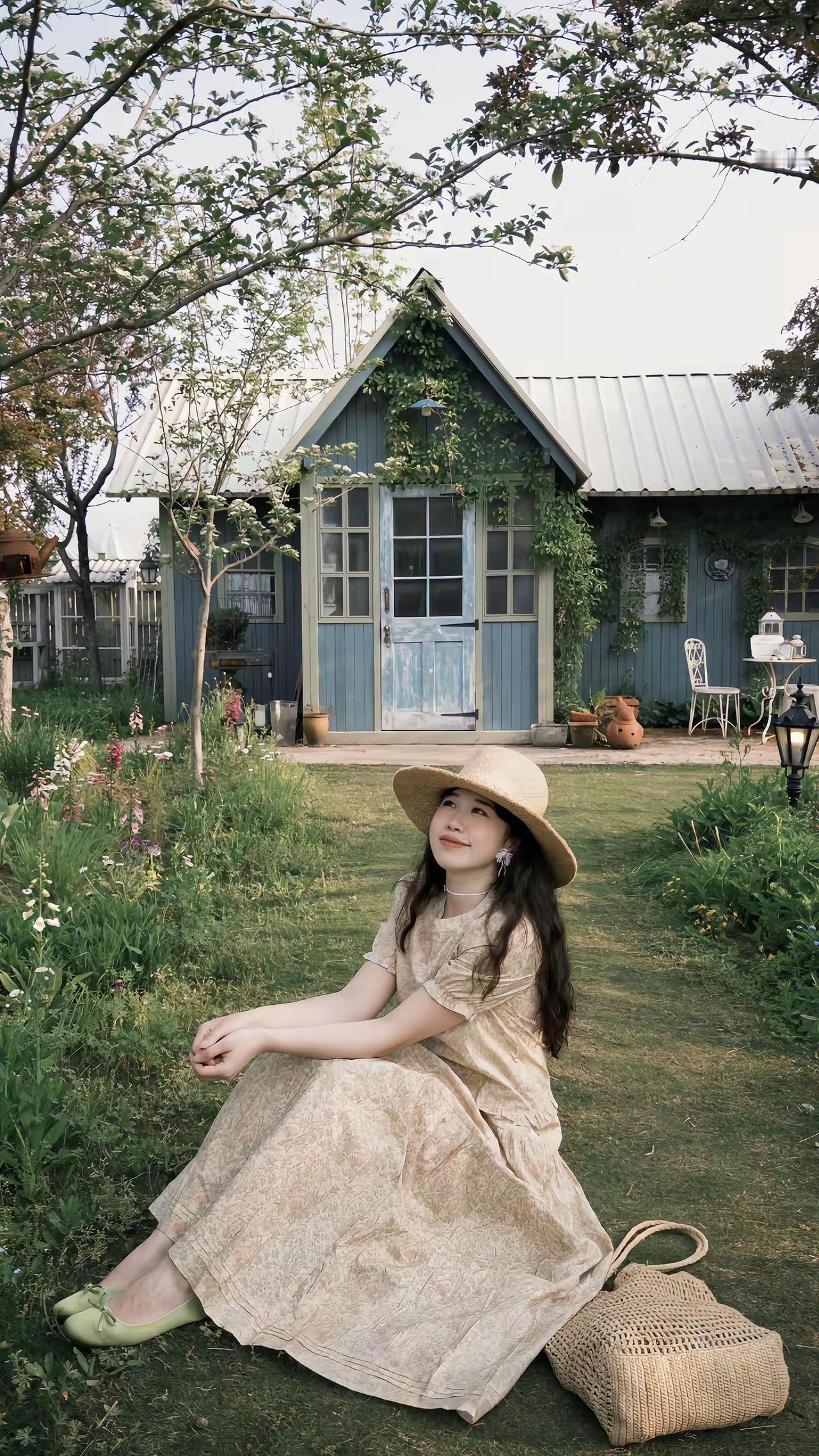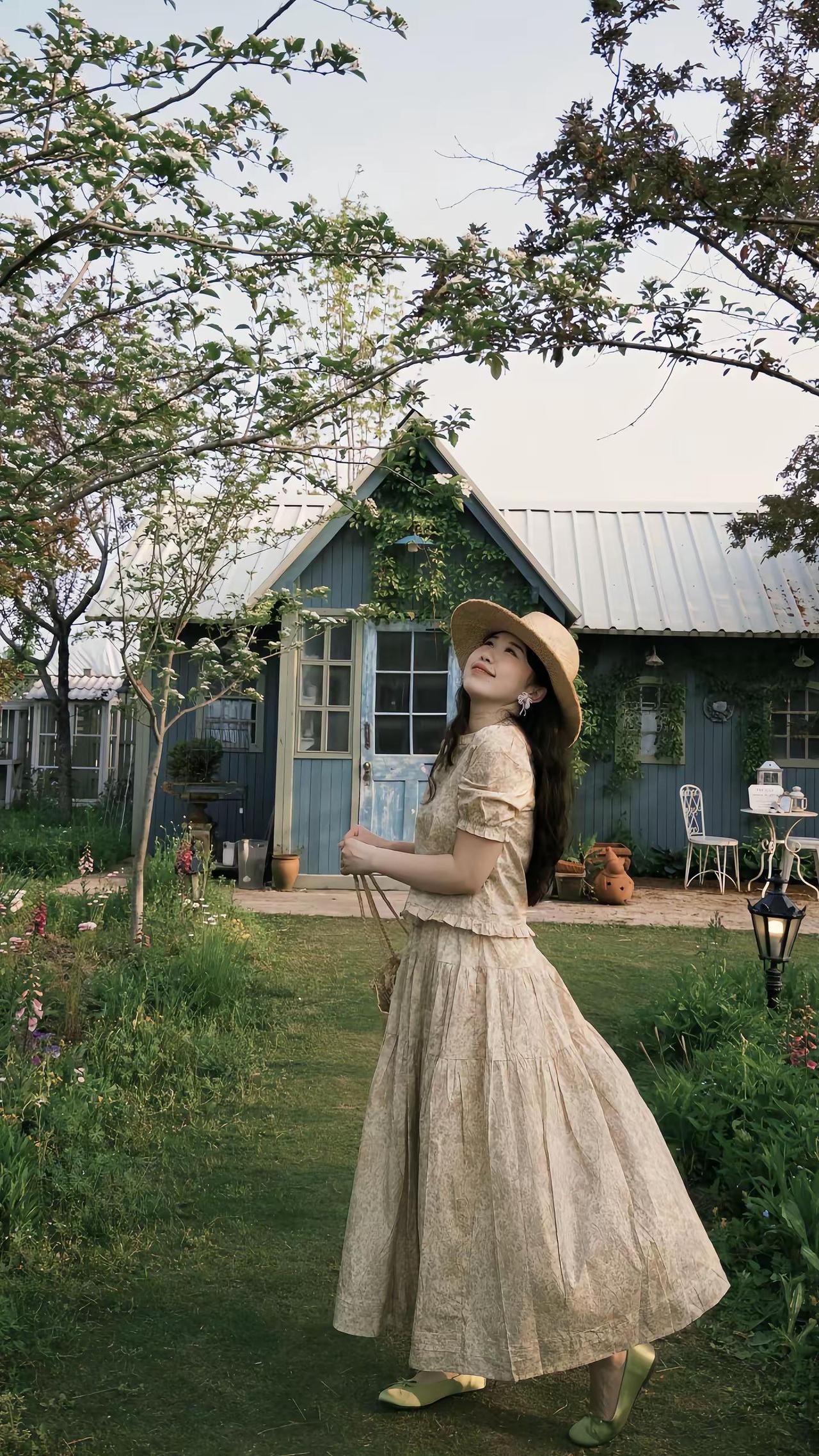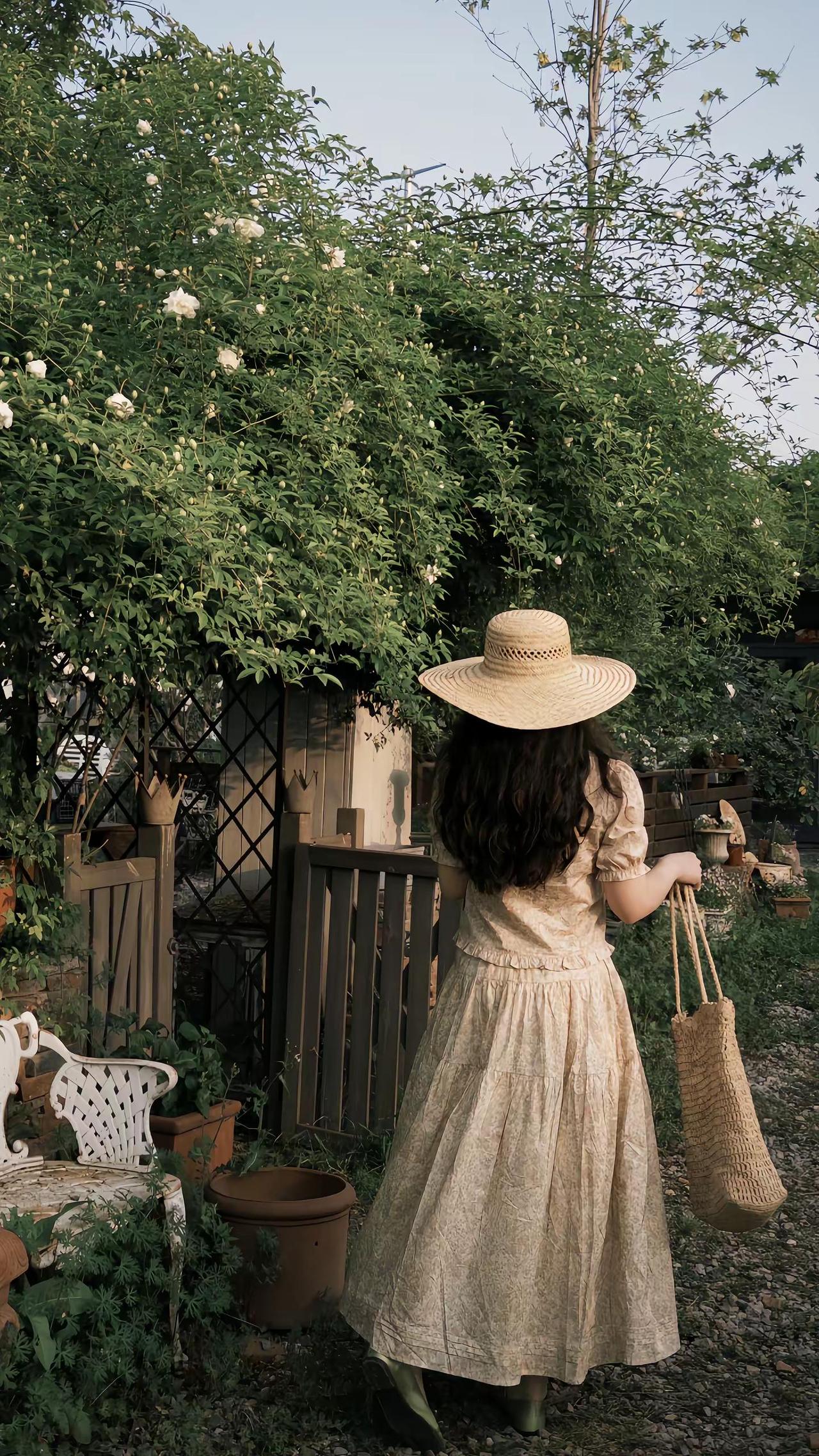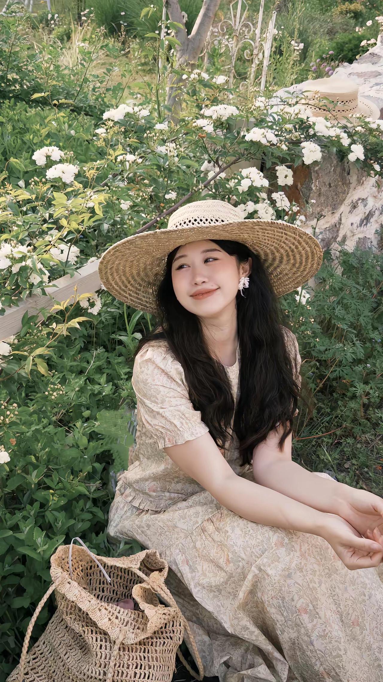 掉进春日南法花园🌾🪻🍃复古黄色碎花裙 草帽与碎花裙