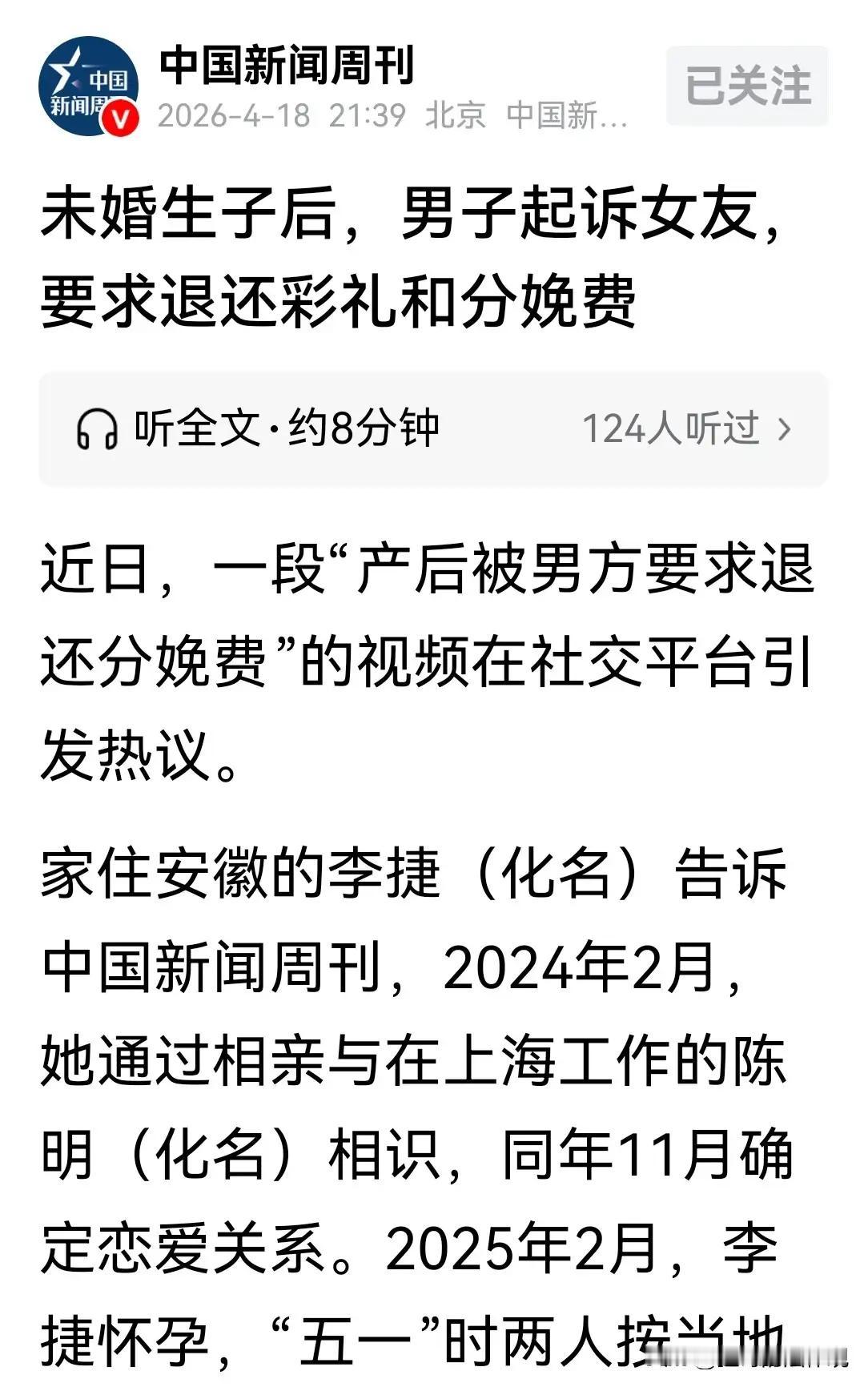 诸位朋友,今儿咱们单说安徽宿松那桩“寒透人心”的婚事。这事儿,听着像“现实版农夫与蛇”,实则是一记戳中婚姻本质的“醒世恒言”。女子刚做完剖腹产,刀口还在渗血,男友却一纸诉状告上法庭,要彩礼、要分摊分娩费、月嫂费,连奶粉钱都要“AA制”。这哪是“夫妻”?分明是“合伙开公司”,连生孩子的“成本”都要掰着指头算清楚,比菜市场讨价还价还“精明”。