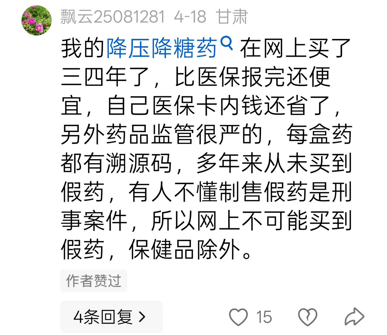 这次网友说到买药,网购比医保报销以后还便宜,这是我之前很难相信的。没想到还是真的。