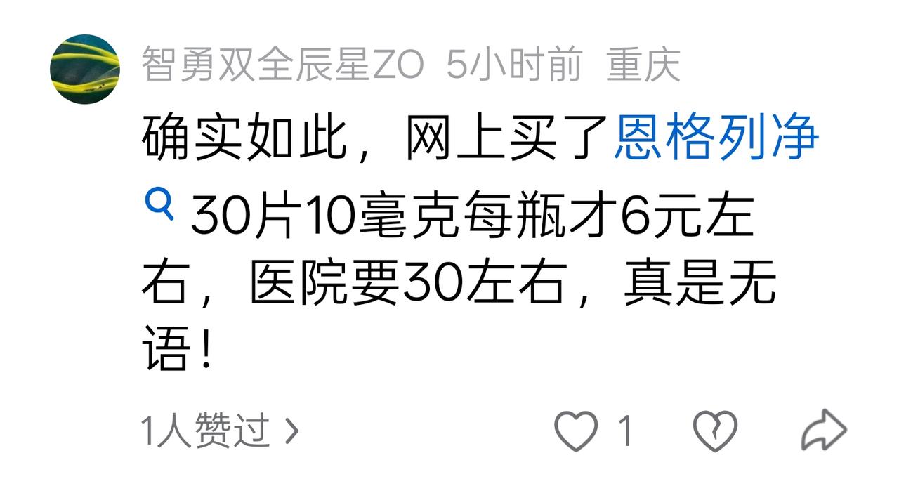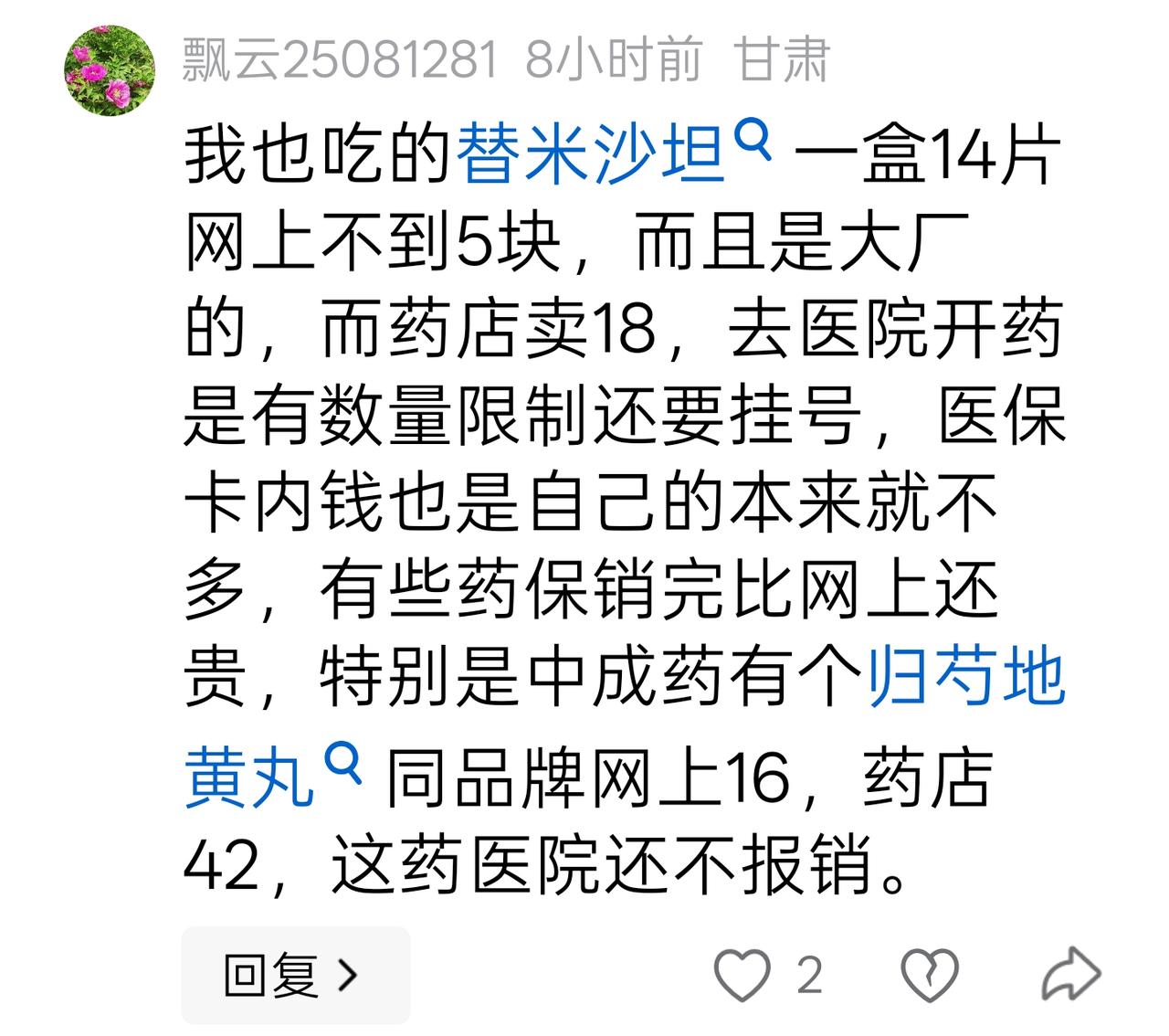 国家医保都报销一部分,还能再比药店贵了。直到今天看到这么多网友评论,我才引起重视。看来还是真有其事。