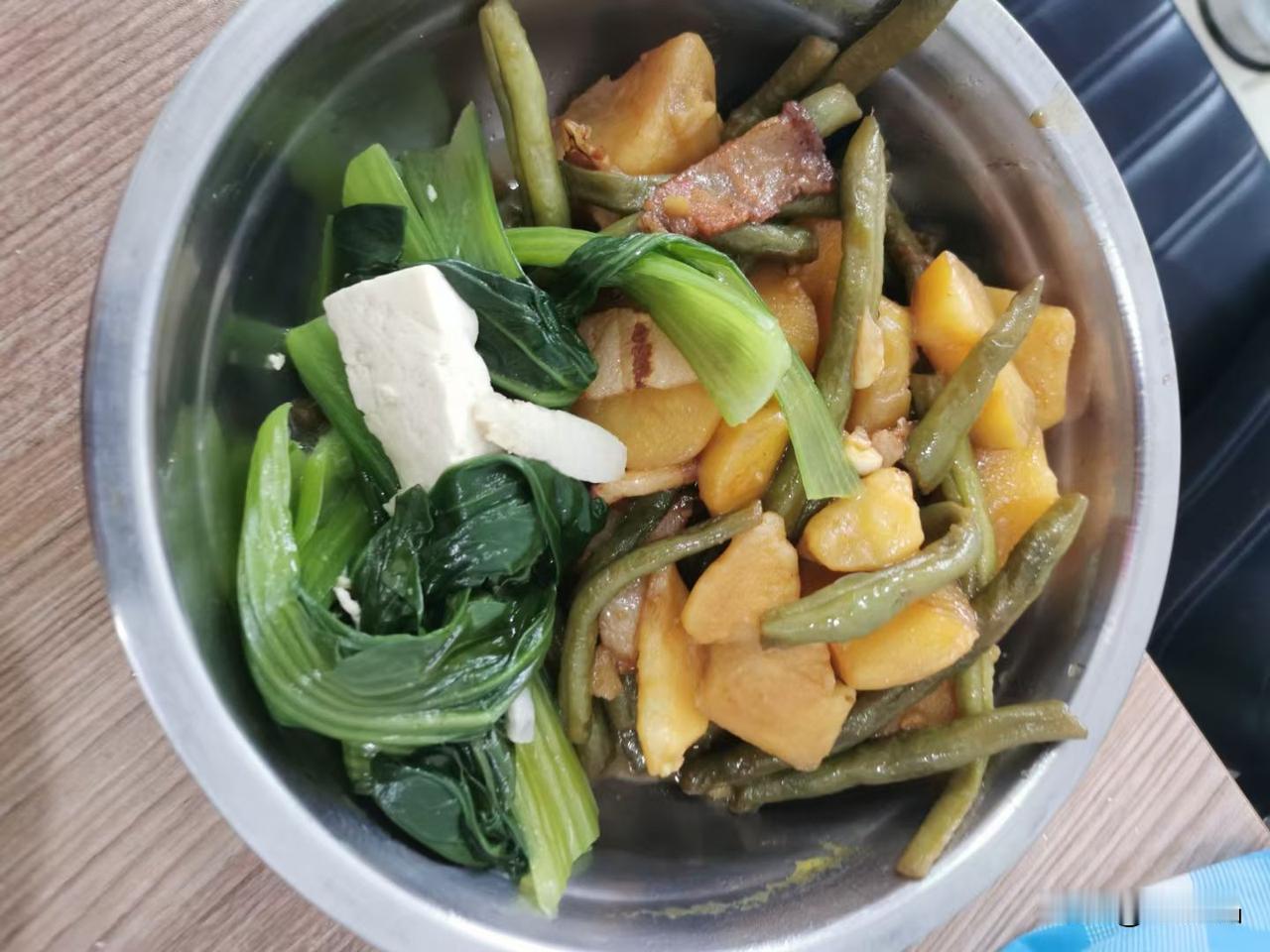 今天我做的午餐是豆腐白菜炖大酱,最后出锅放点大葱;我做的豆腐白菜炖大酱看着就清爽