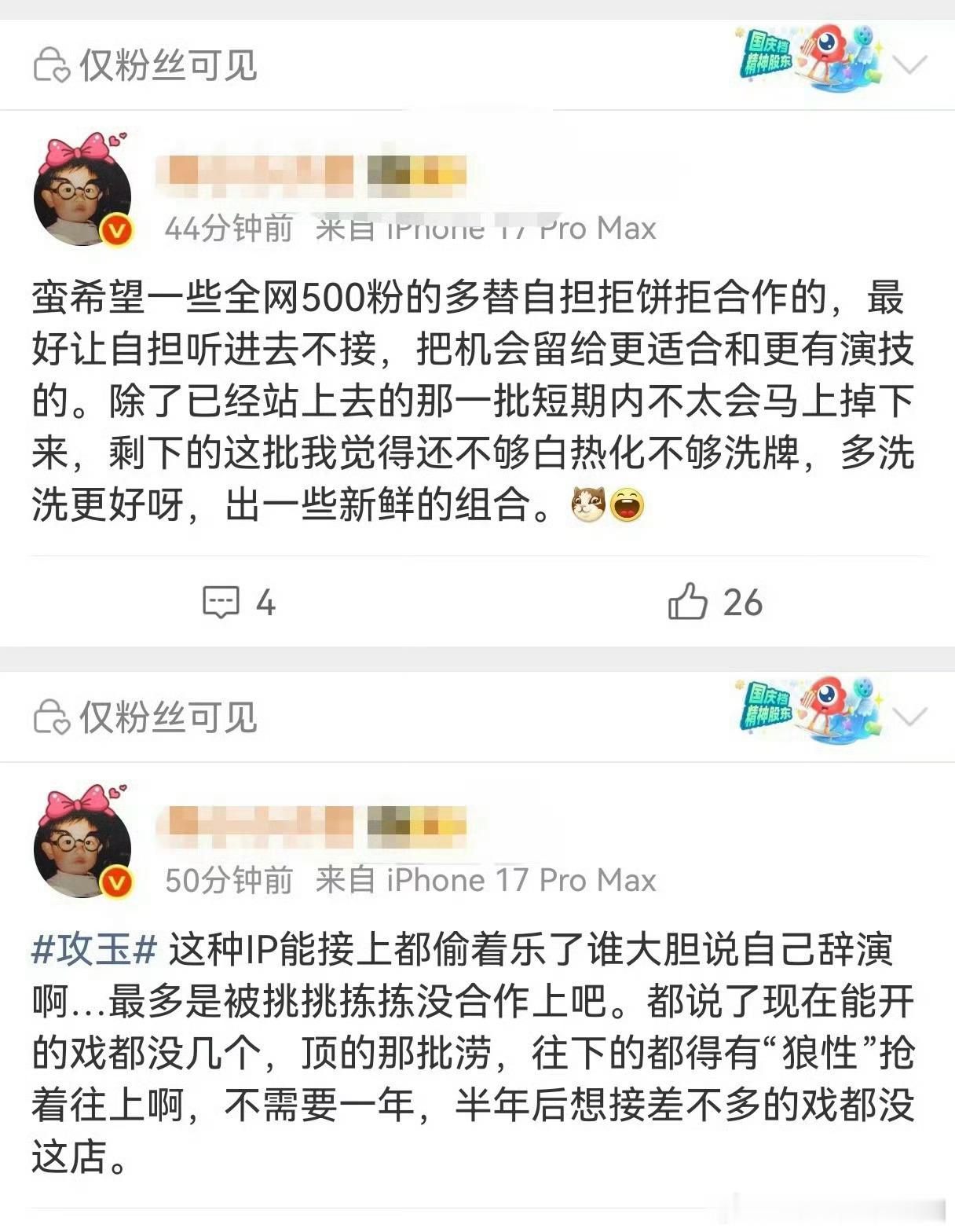 疑似业内内涵攻玉换男主业内下场内涵说是攻玉换了侯明昊,之前黄牛都定了说是4月中旬要官宣横店开机来着,侯明昊以后和平台不会不好合作了吧