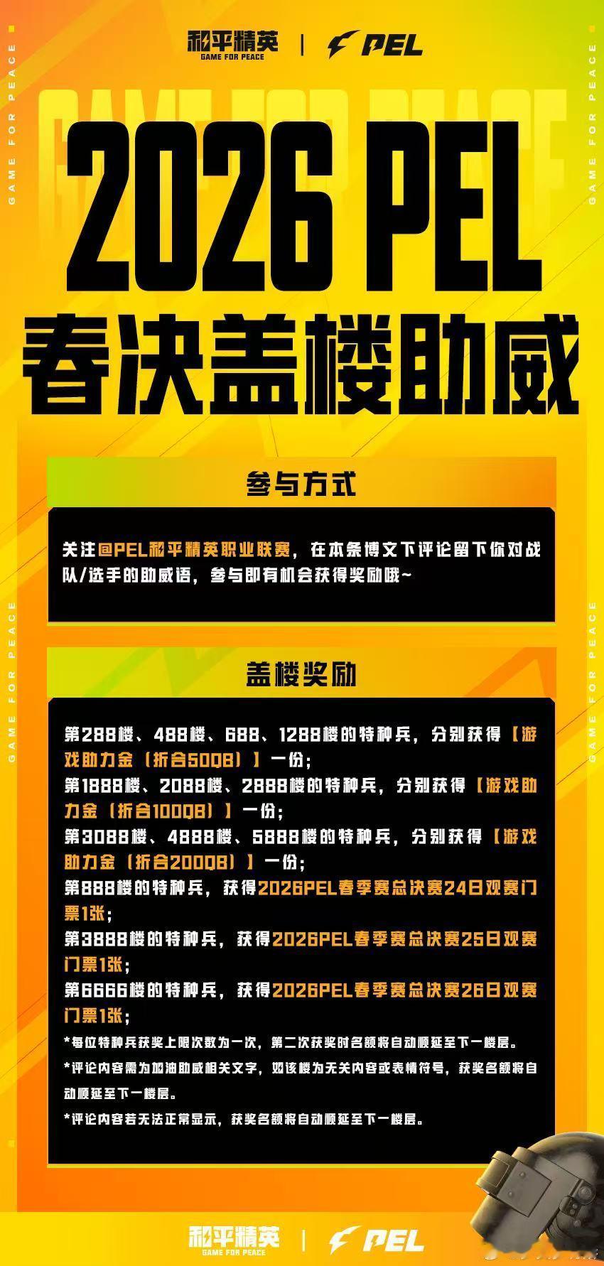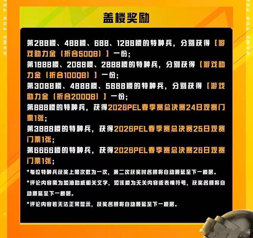 为PEL主队接好运2026PEL春季赛总决赛PEL盖楼活动开启,全员集结为主队应