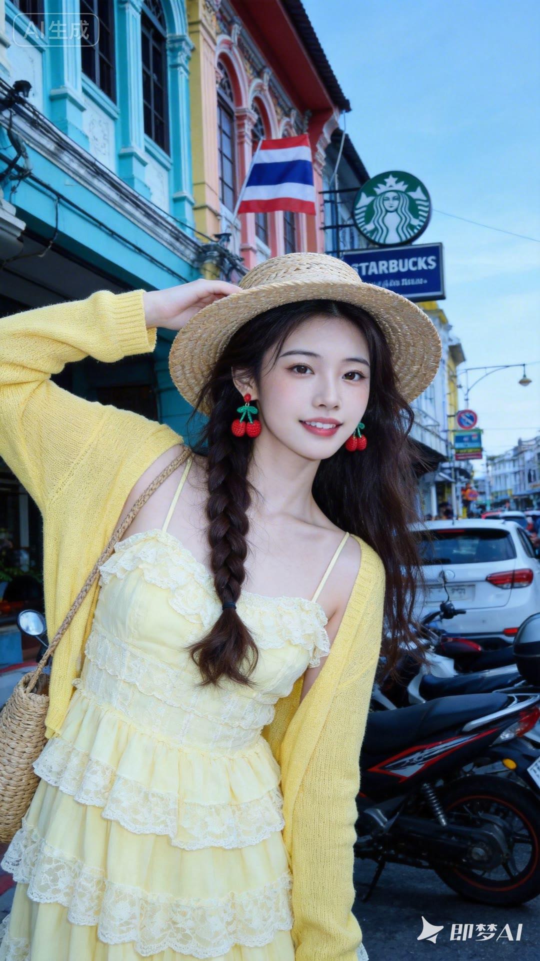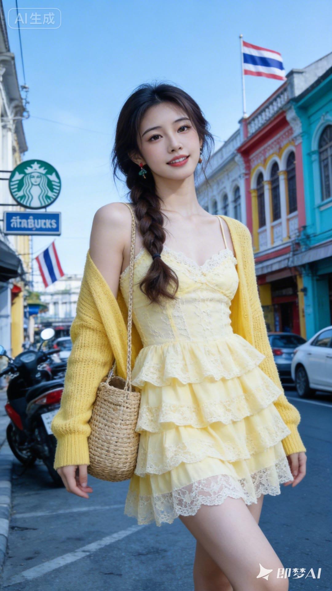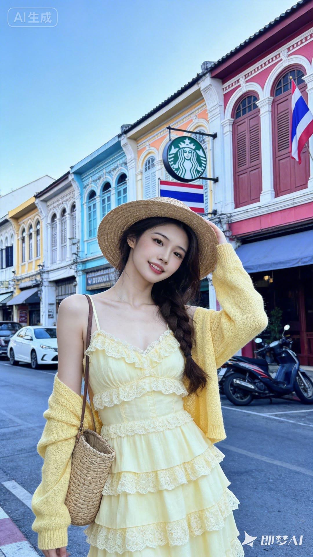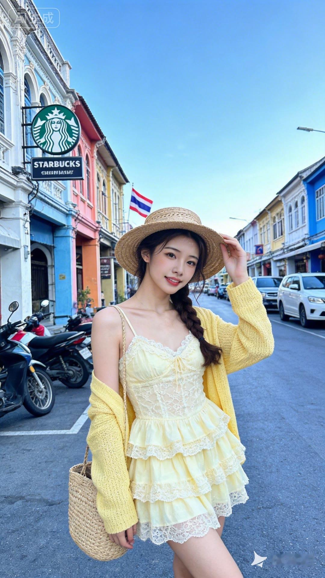 夏日甜美穿搭,花篮手捧,阳光下的少女